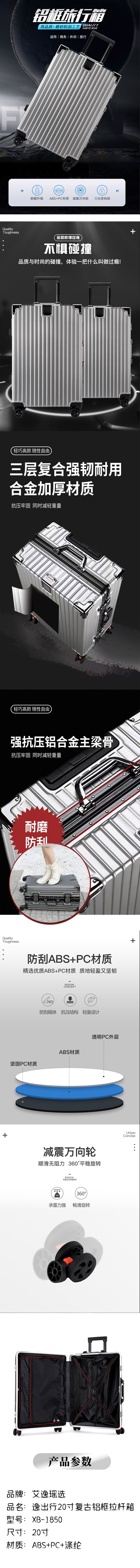 艾逸瑶选/逸出行20寸复古铝框拉杆箱XB-1850(单位:个) 银色