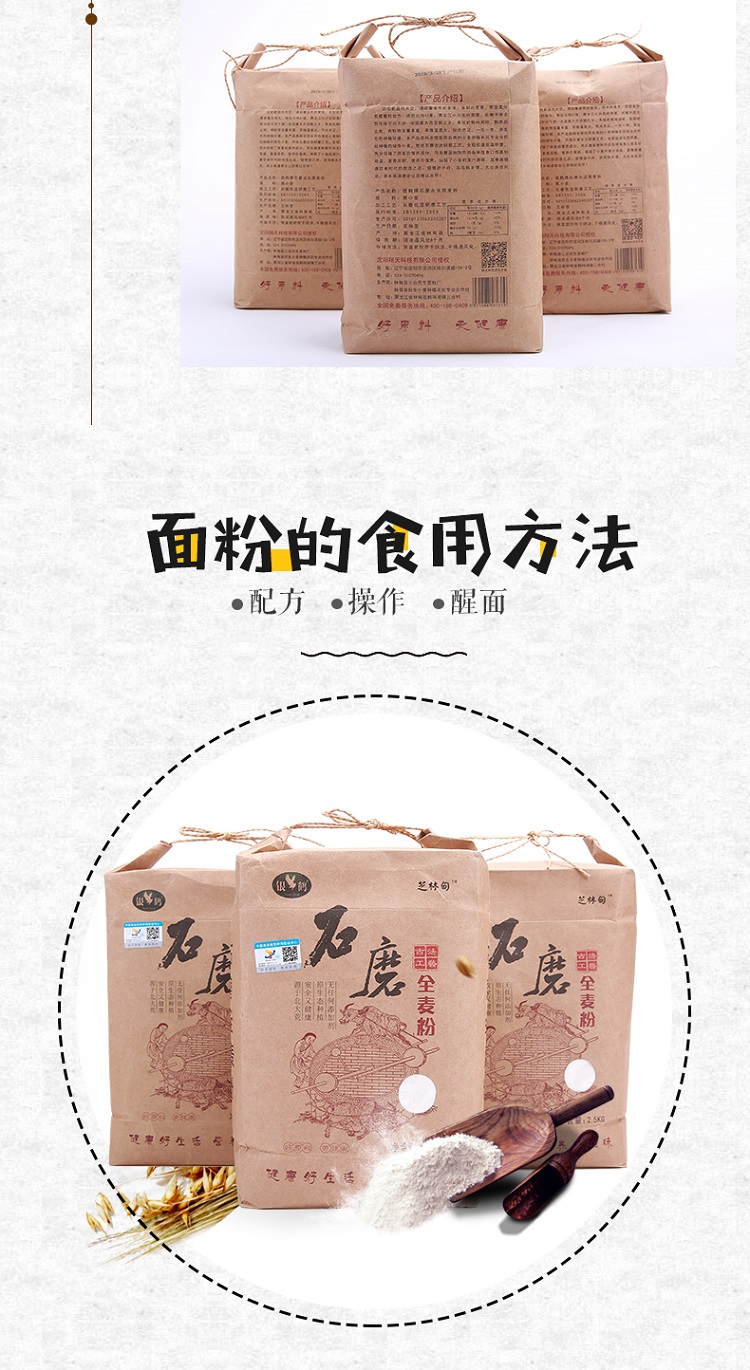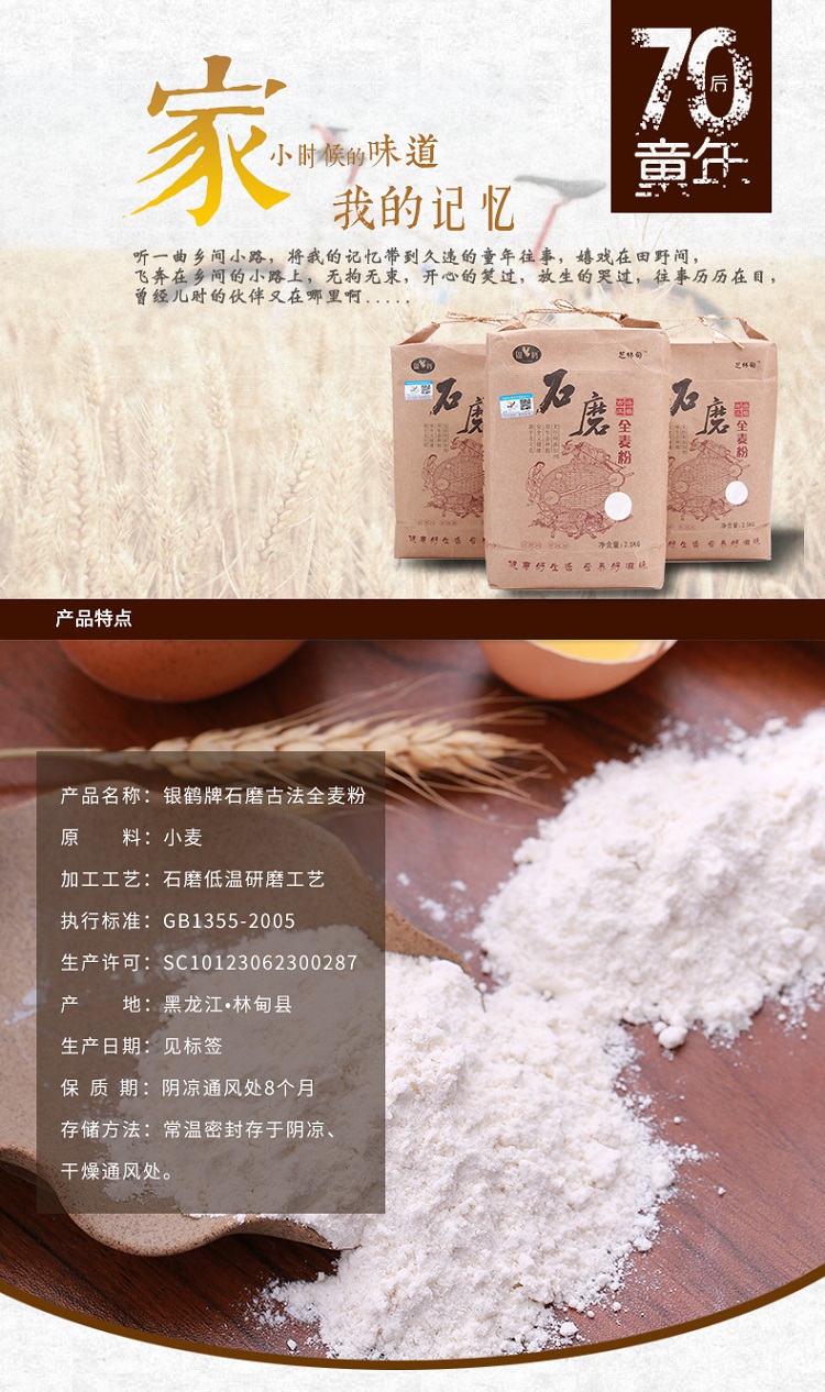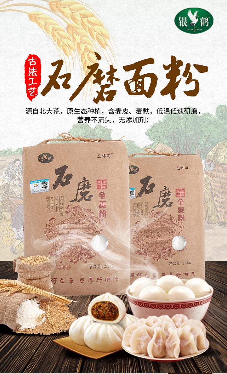 银鹤东北寒地古法石磨全麦面粉2.5kg(单位:袋) 牛皮纸袋