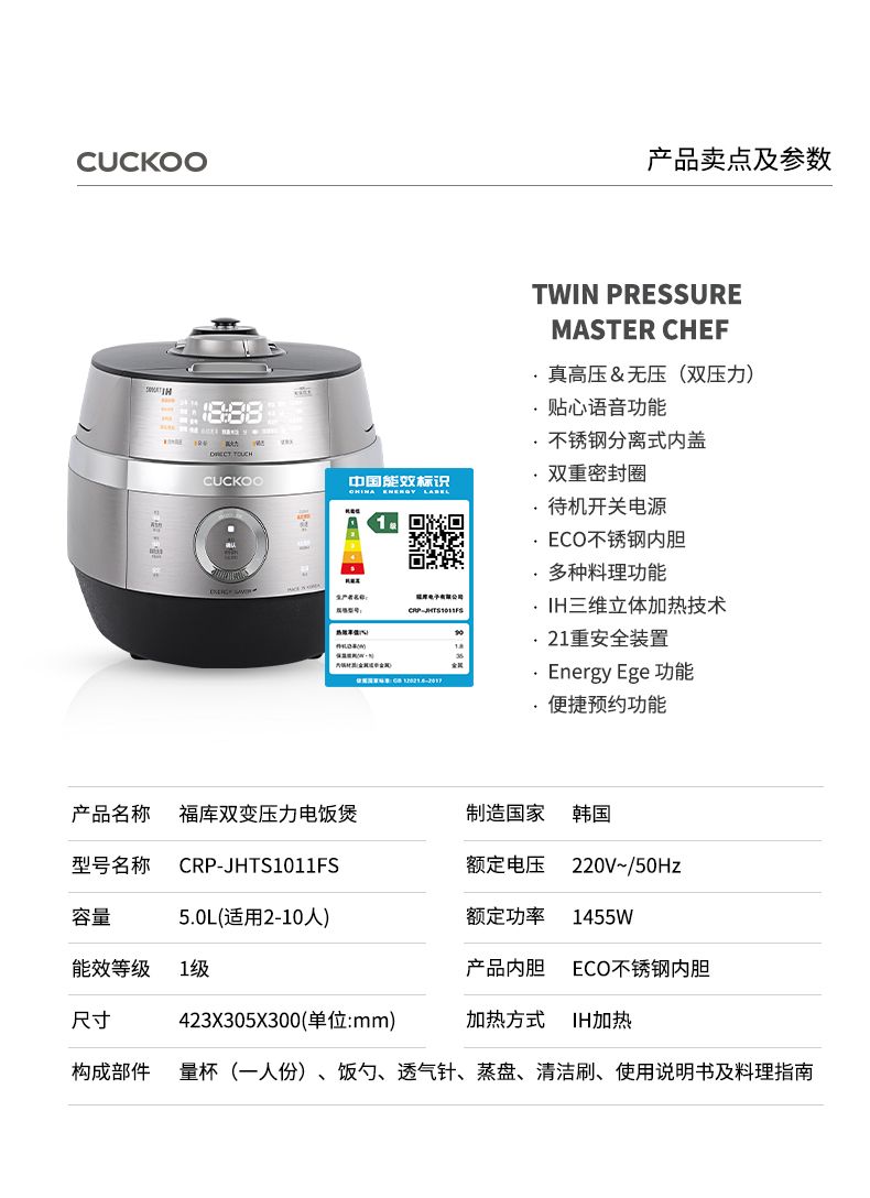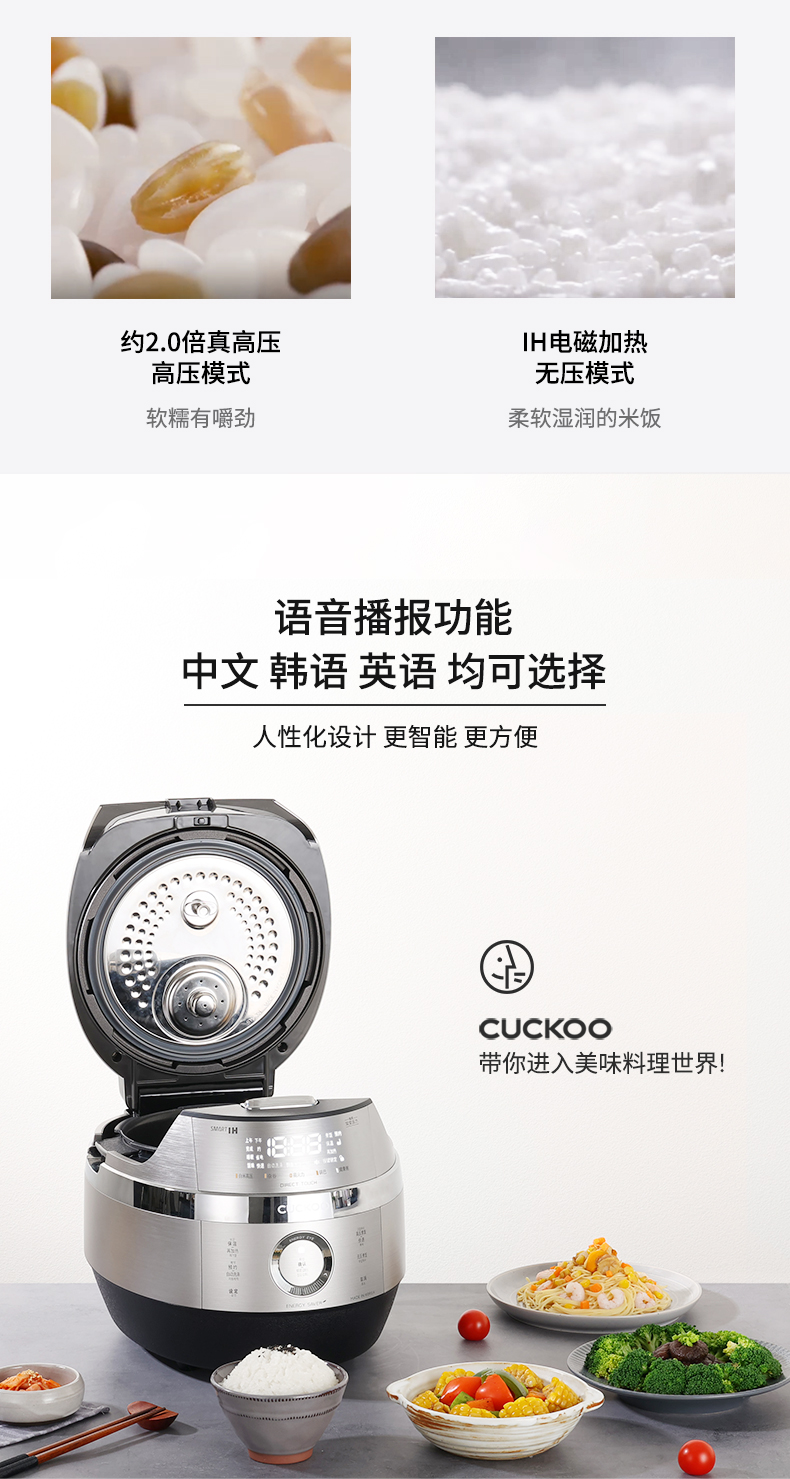 CUCKOO福库CRP-JHTS1011FS韩国原装进口IH真高压双变压力电饭煲(单位:台) 银色