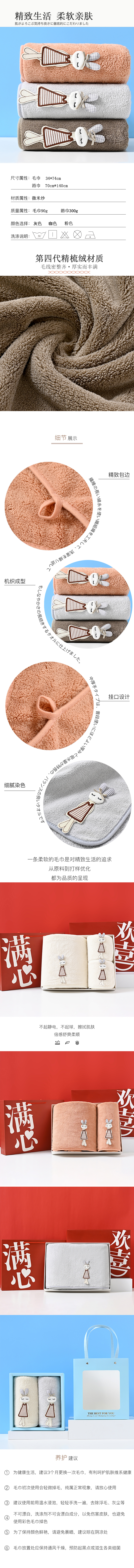 UOMI微米纱毛巾浴巾组合套装--欢喜兔-2 混色