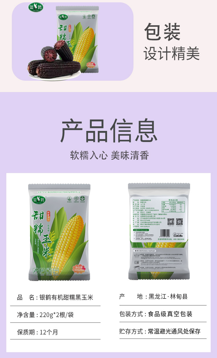 银鹤东北寒地有机黑糯玉米240g*2(单位:根)