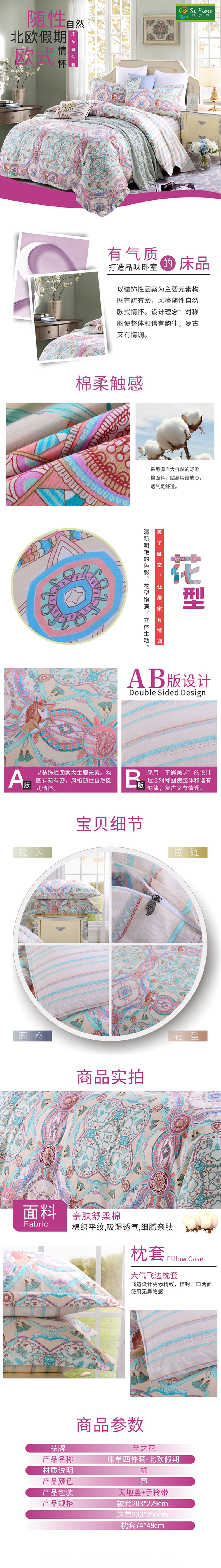 富安娜 床单四件套 北欧假期 203*229cm 粉色(单位:套)