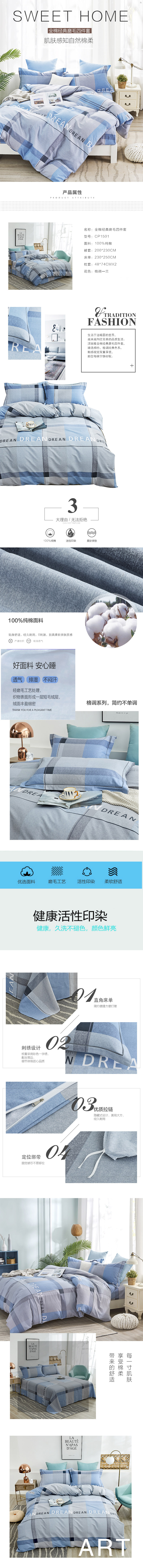 洁丽雅(GRACE)全棉经典磨毛四件套200*230cm 格调兰 CP1501