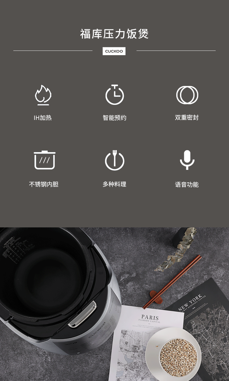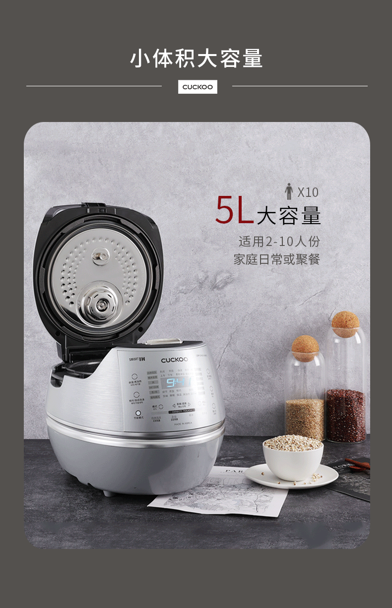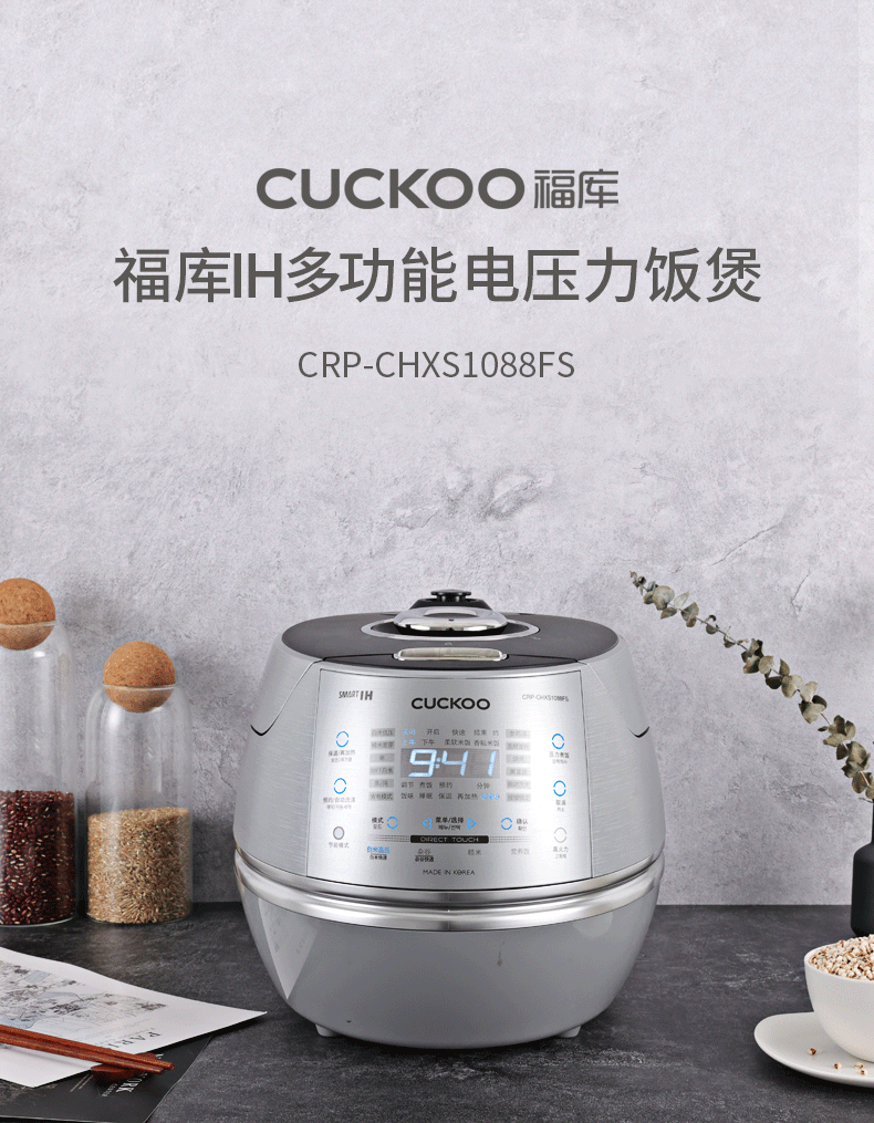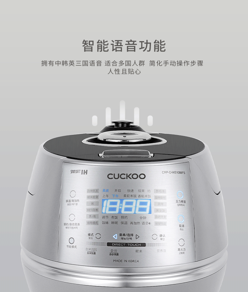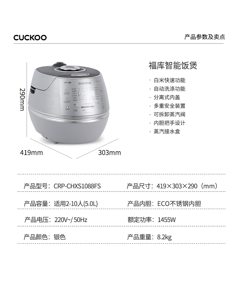 CUCKOO福库CRP-CHXS1088FS韩国原装进口IH加热高压力多功能电饭煲(单位:台) 银色