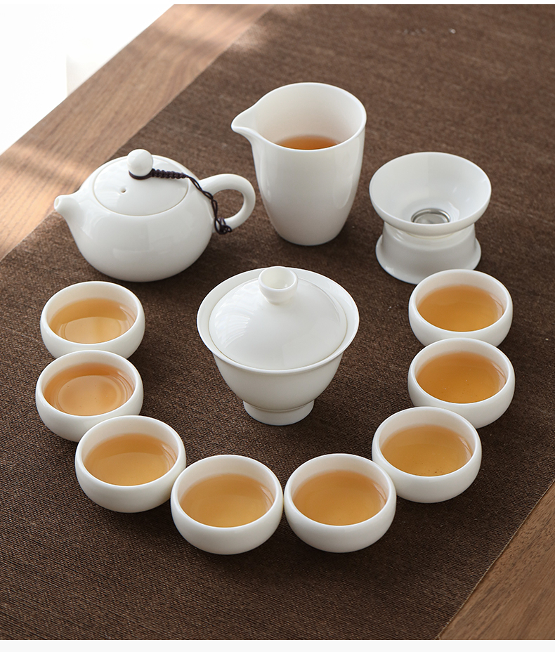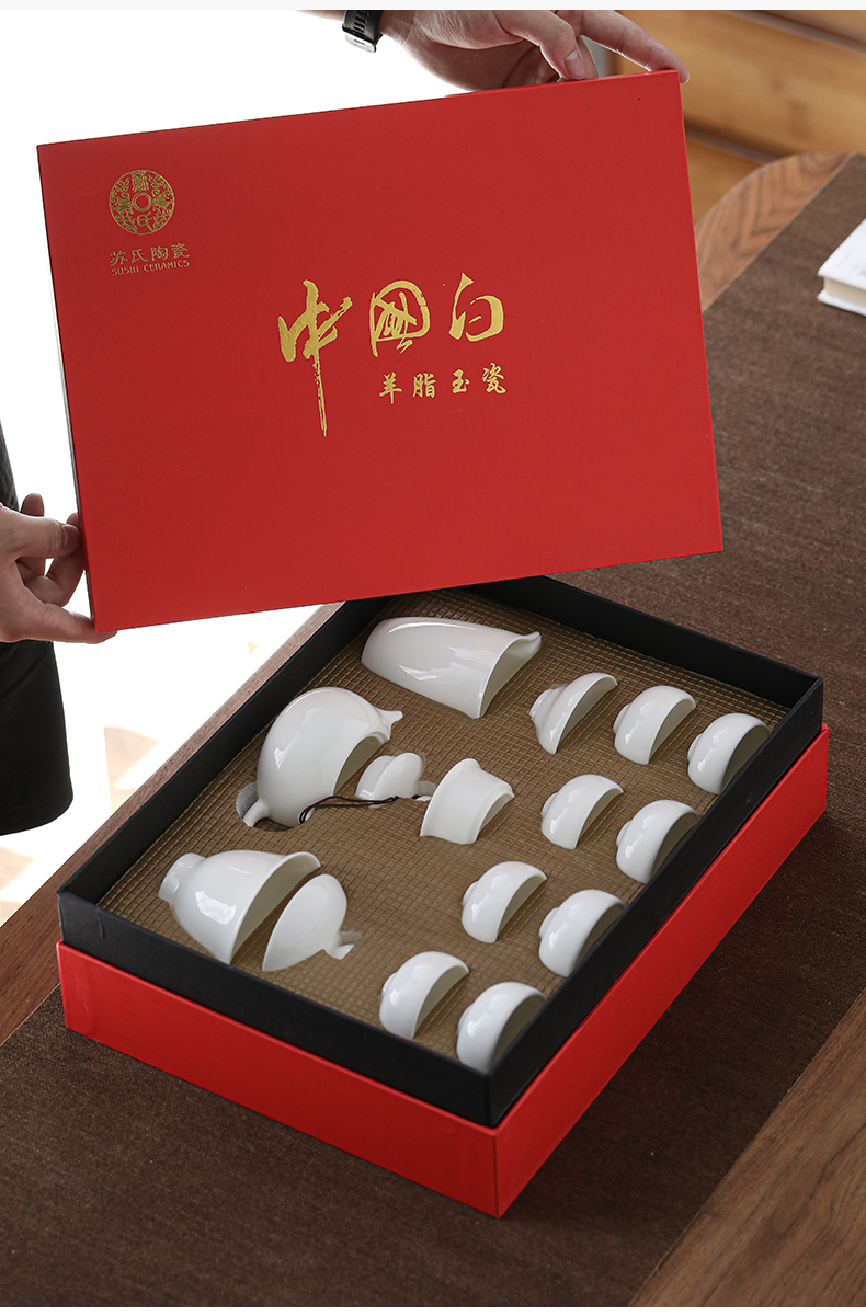 苏氏陶瓷(SUSHI CERAMICS)J0335茶具套装白瓷茶壶盖碗茶杯12头礼盒装(单位:套) 白色