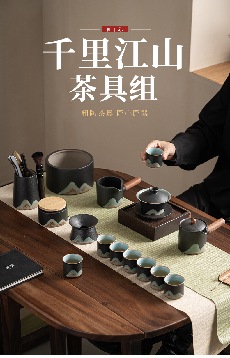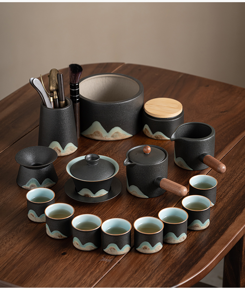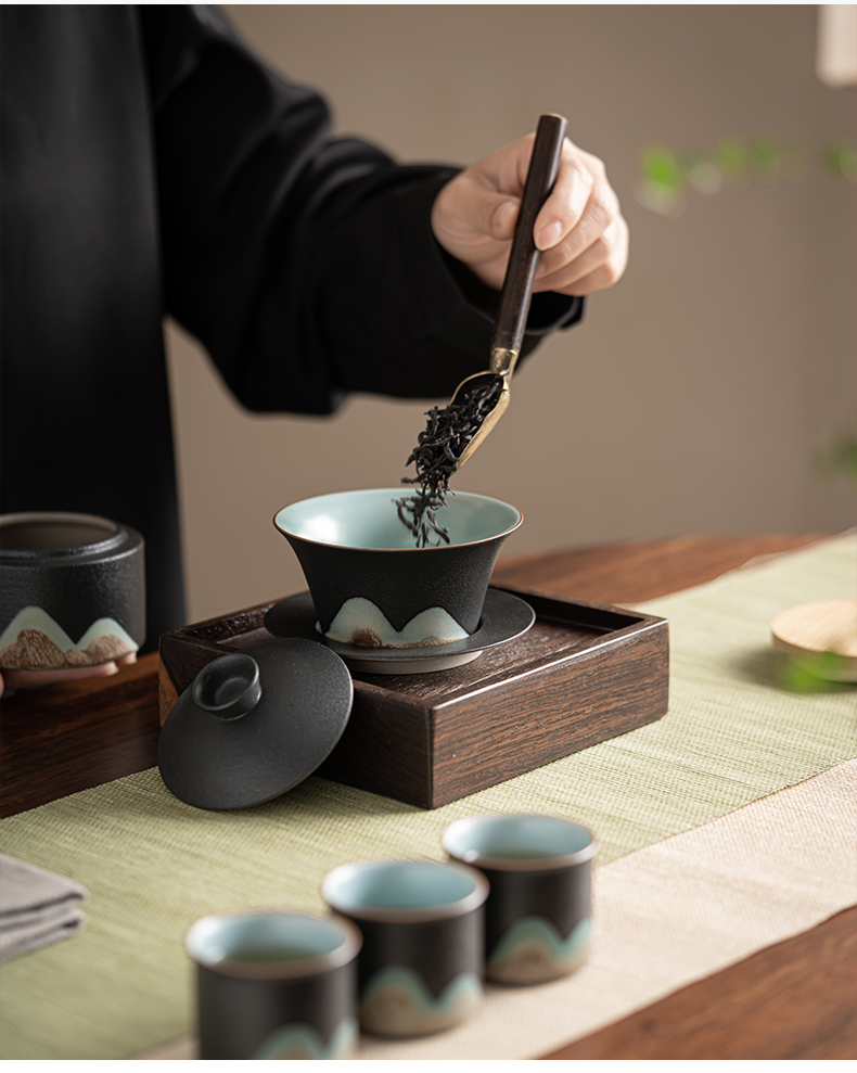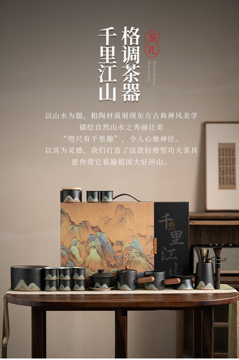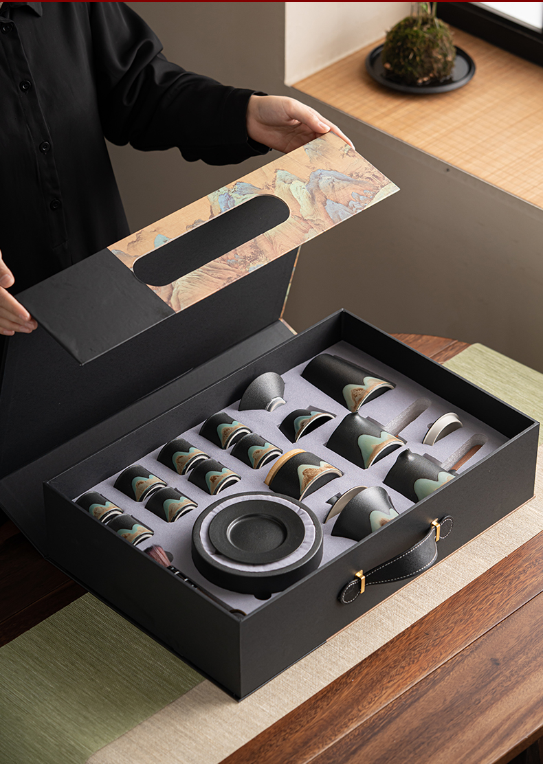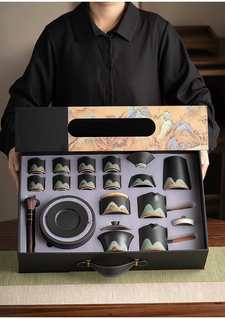 苏氏陶瓷(SUSHI CERAMICS)J0794茶具套装釉画彩大套组礼盒装(单位:套) 黑色