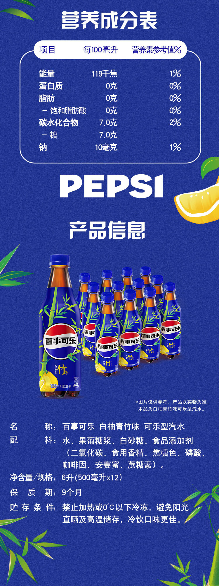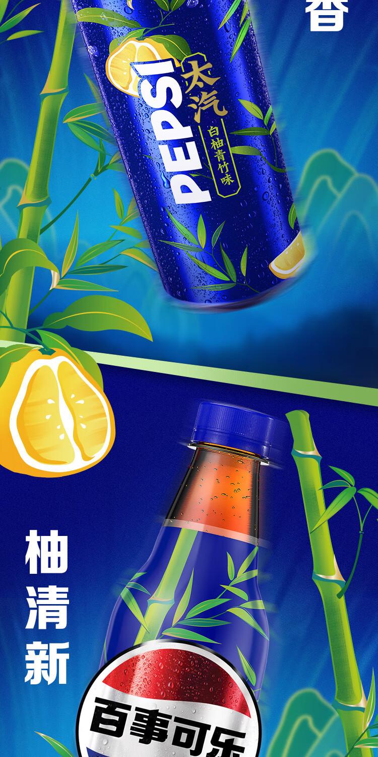 百事可乐 Pepsi太汽系列白柚青竹味汽水碳酸饮料 500ml*12瓶/箱 白柚青竹味汽水