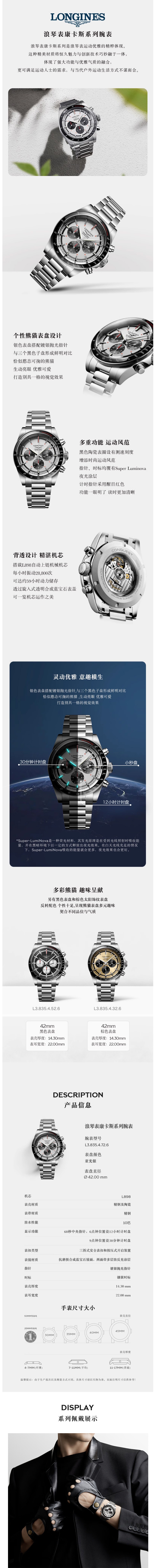 浪琴Longines 康卡斯系列悦动 机械钢带男表 L3.835.4.72.6(单位1块) 银色