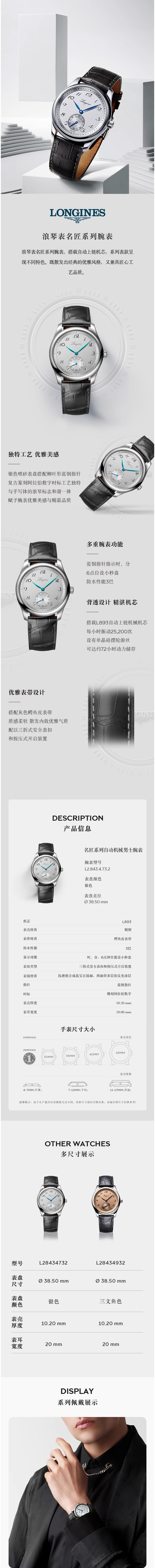 浪琴Longines 名匠系列机械男士手表 L2.843.4.73.2(单位1块) 银色