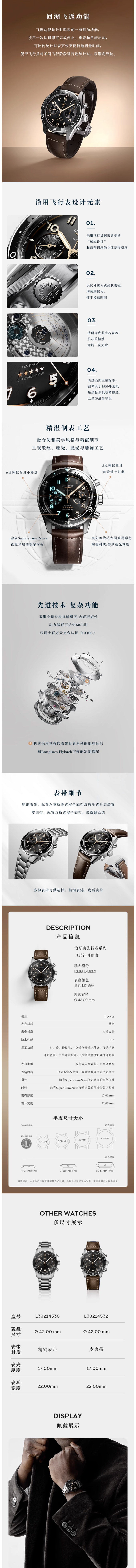 浪琴Longines 先行者系列飞返计时机械男士手表 L3.821.4.53.2(单位1块) 黑色