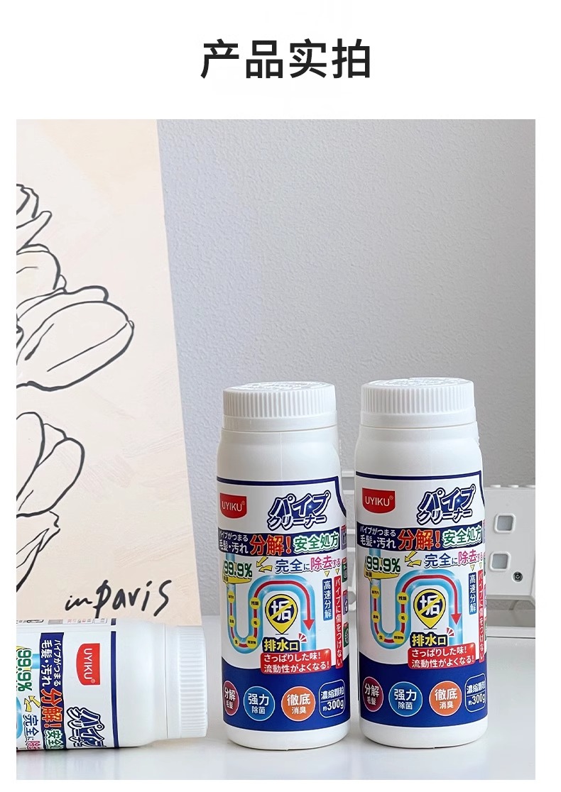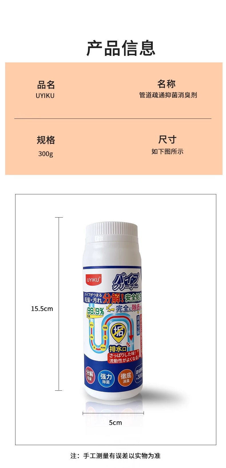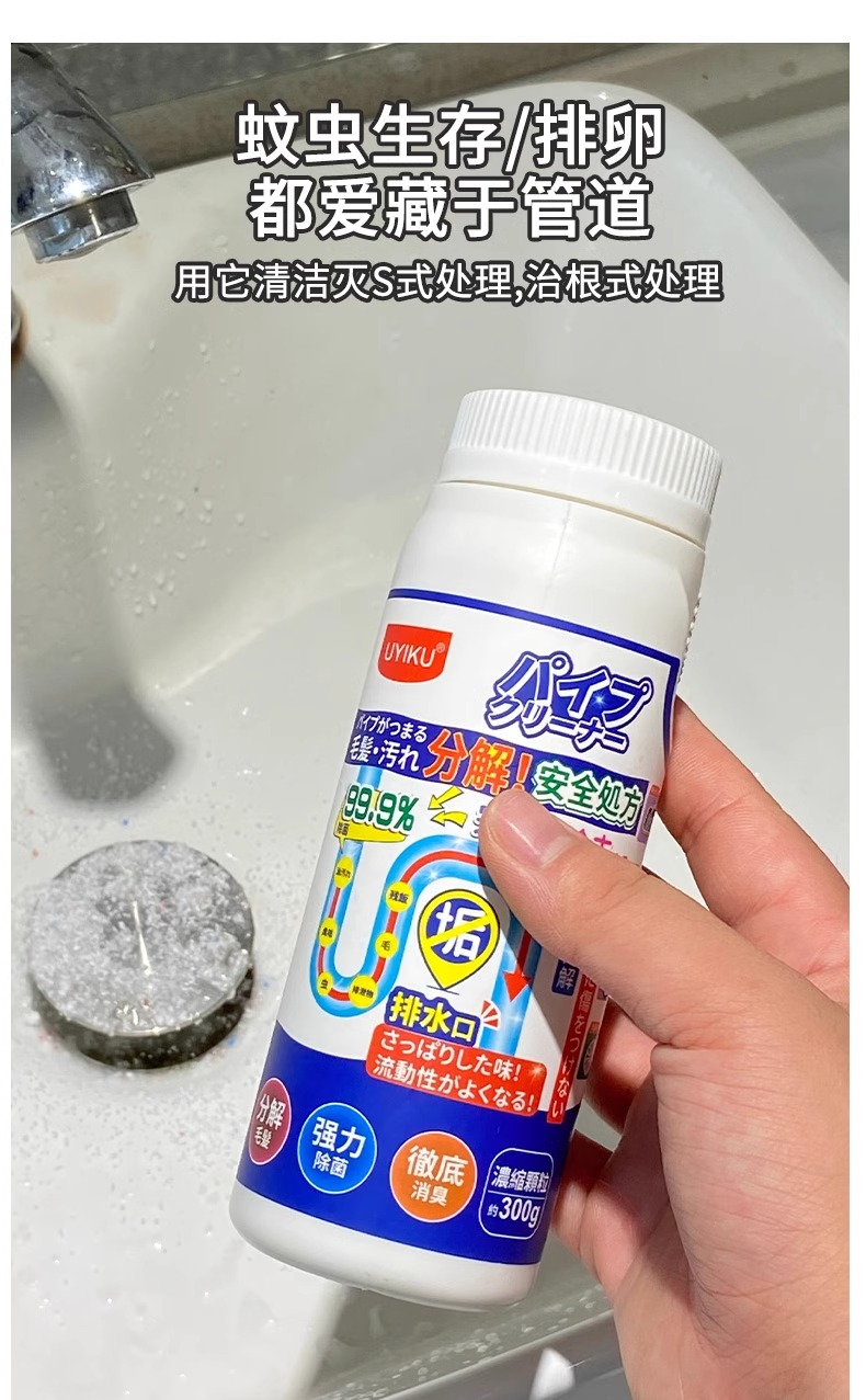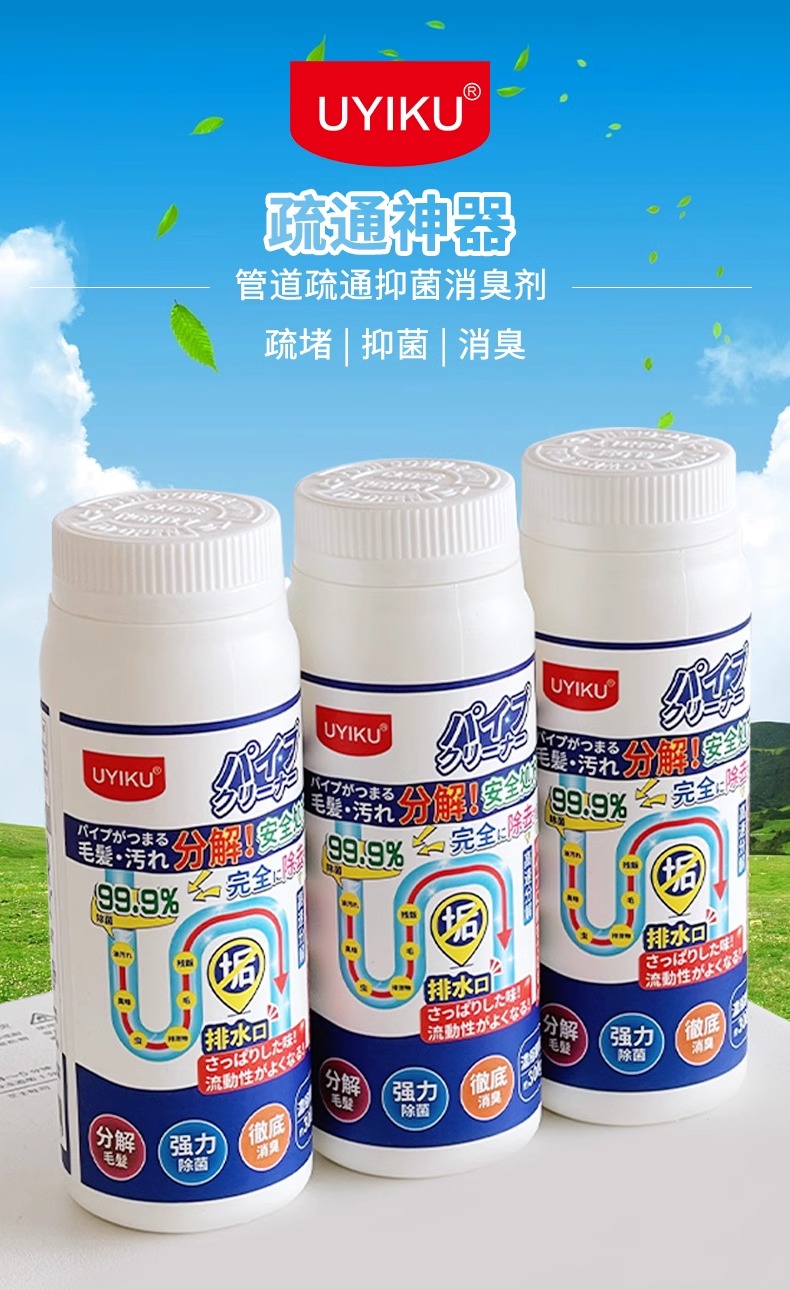 UYIKU物以可管道疏通剂强力溶解厨房下水道疏通神器浴室地漏除臭抑菌堵塞溶解300g/3瓶 白色