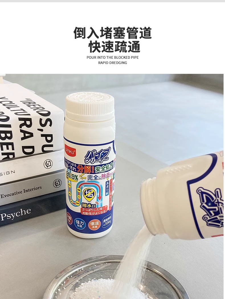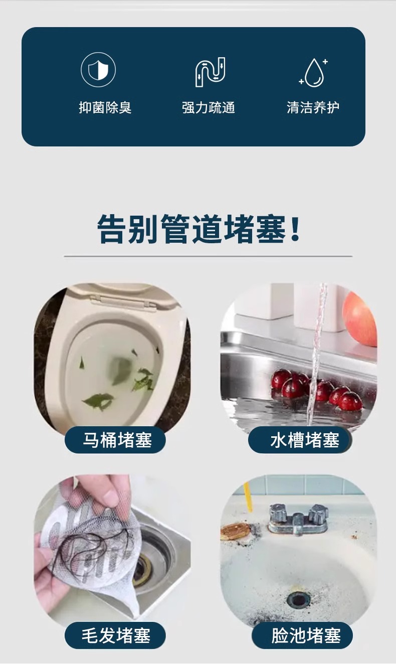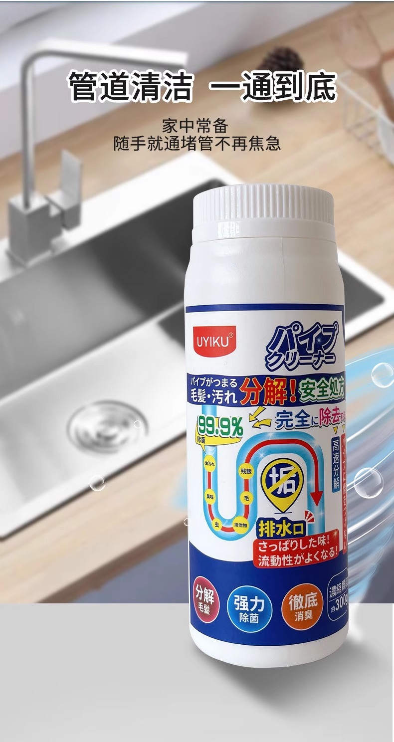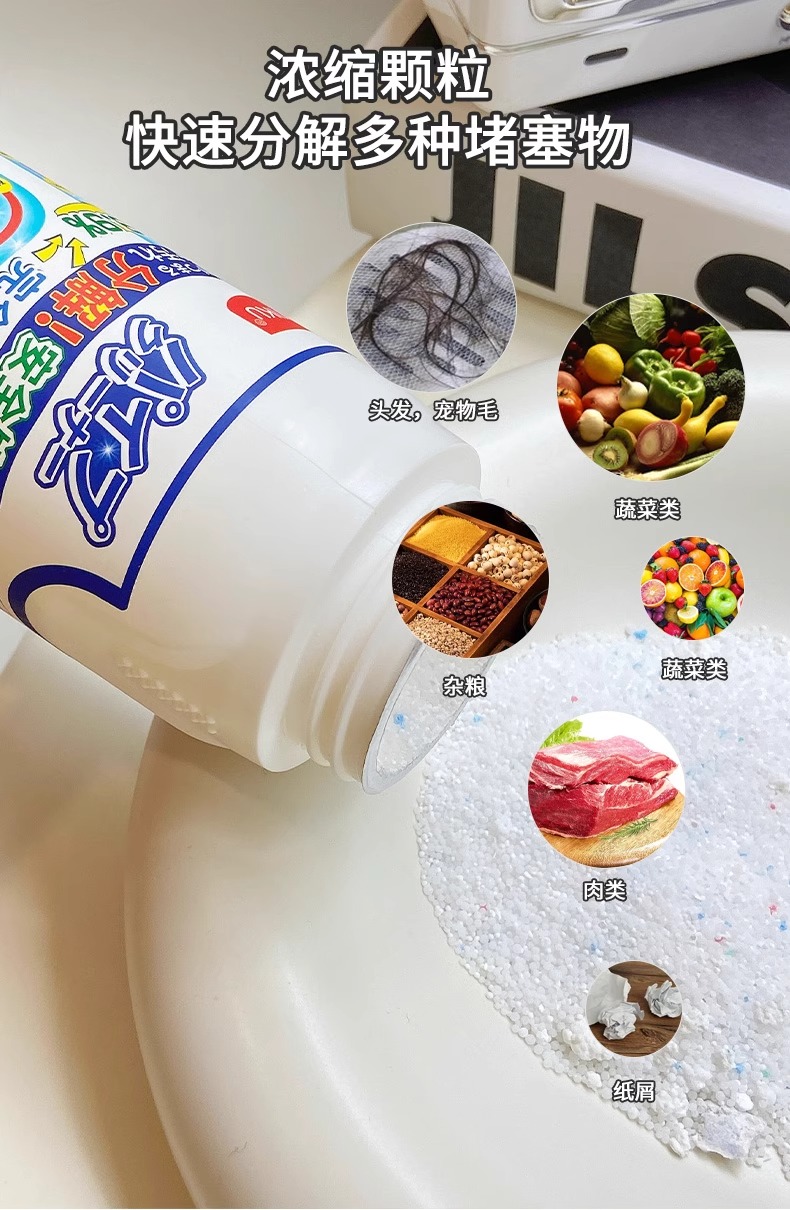 UYIKU物以可管道疏通剂强力溶解厨房下水道疏通神器浴室地漏除臭抑菌堵塞溶解300g/3瓶 白色