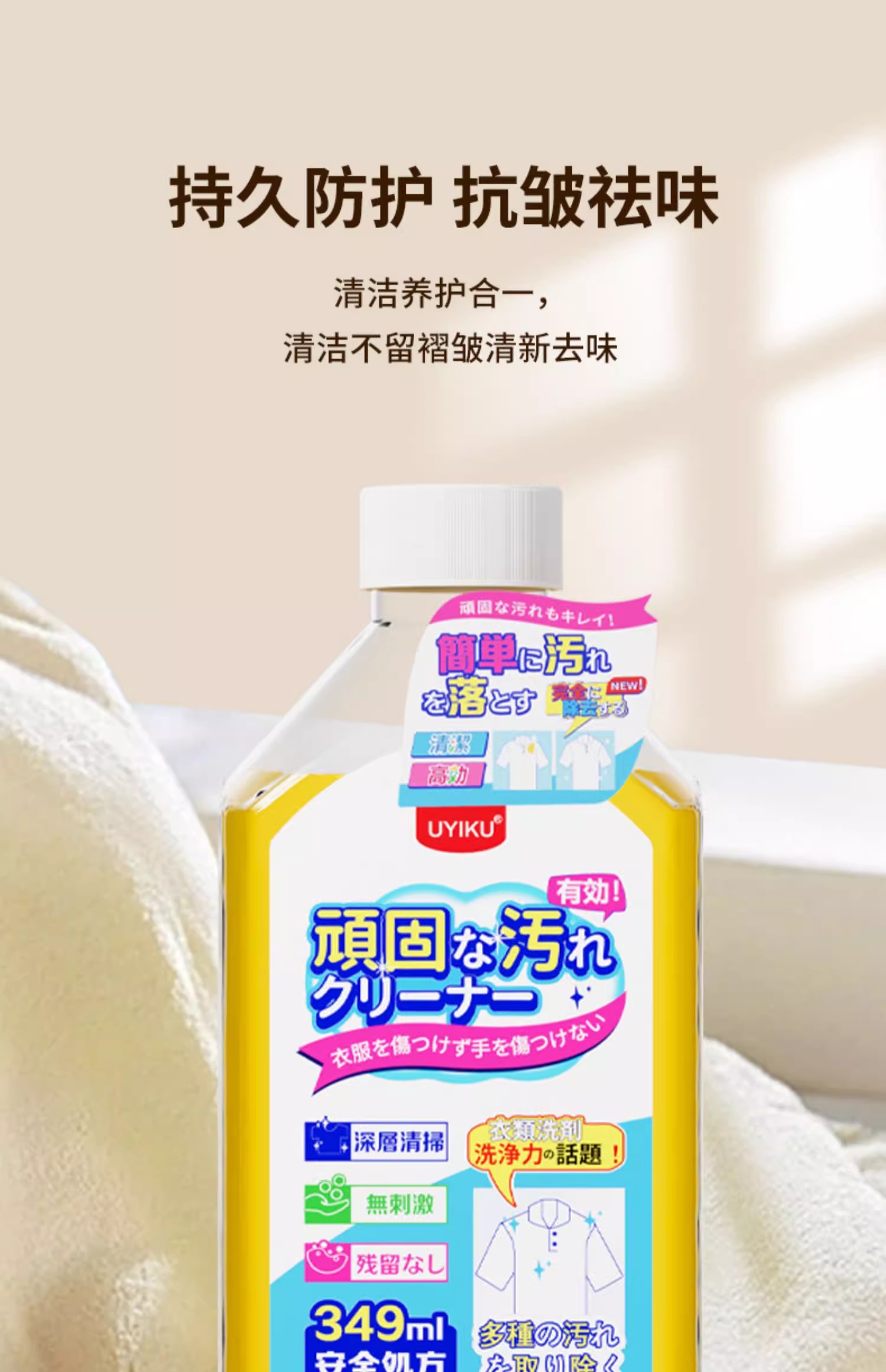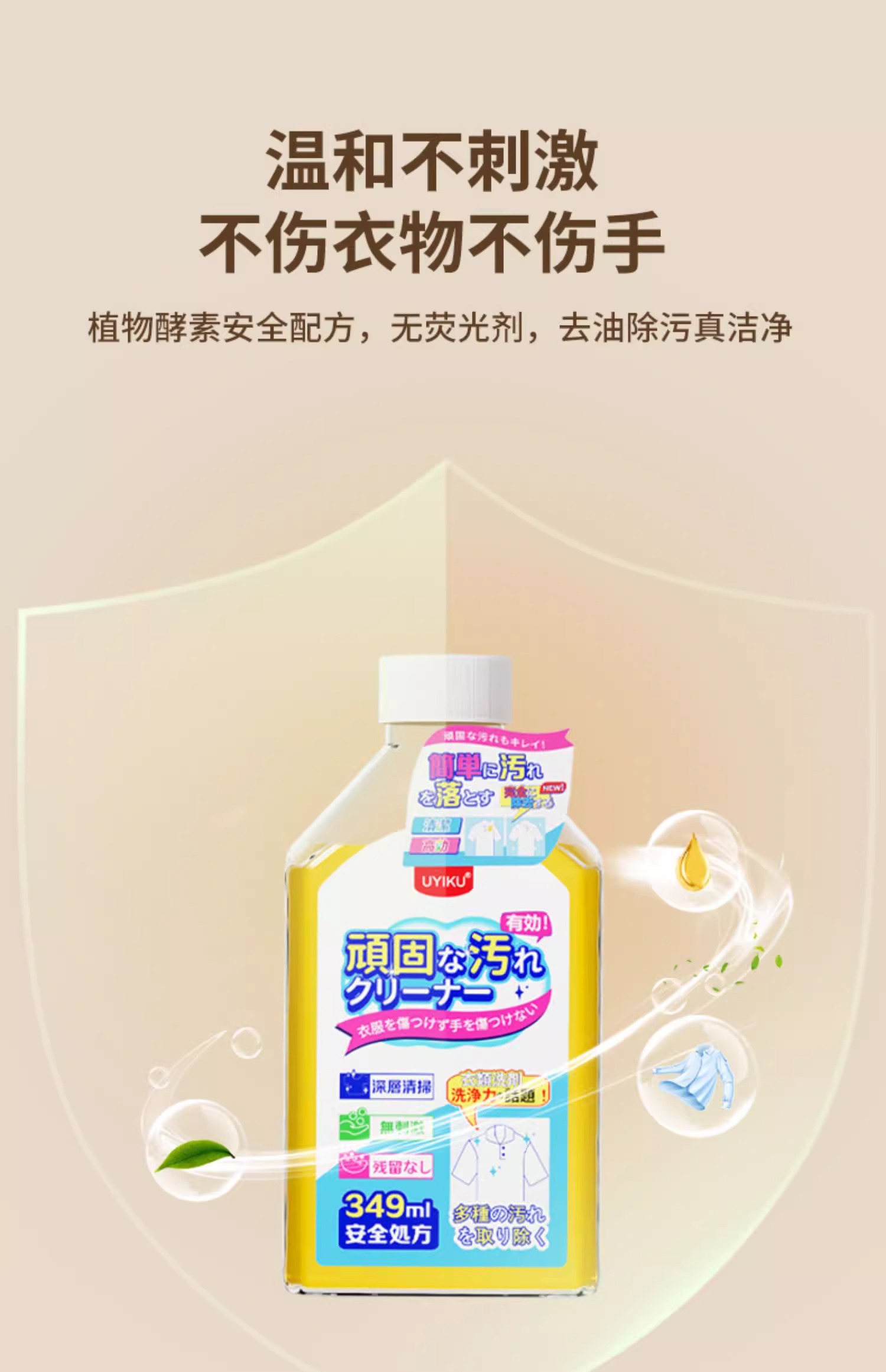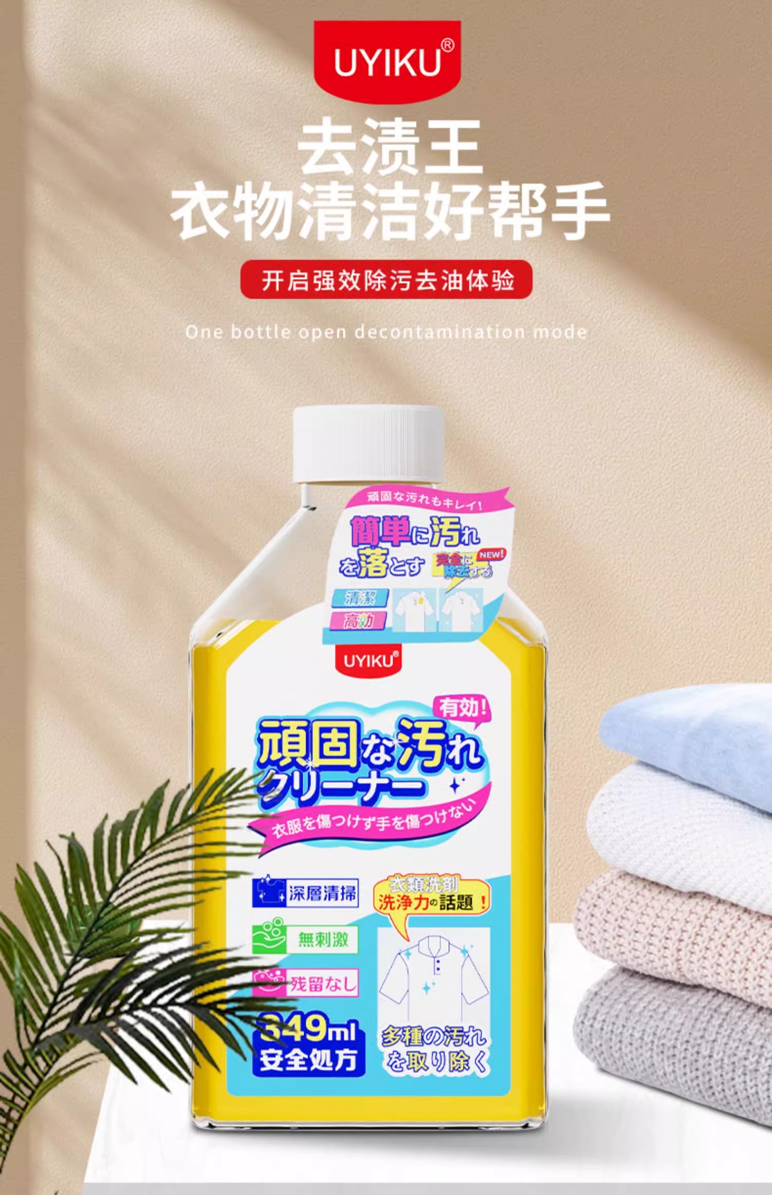 UYIKU物以可强力清洁去渍王衣物去污渍洗白神器清洗顽固污渍清洁剂349ML/3瓶 黄色