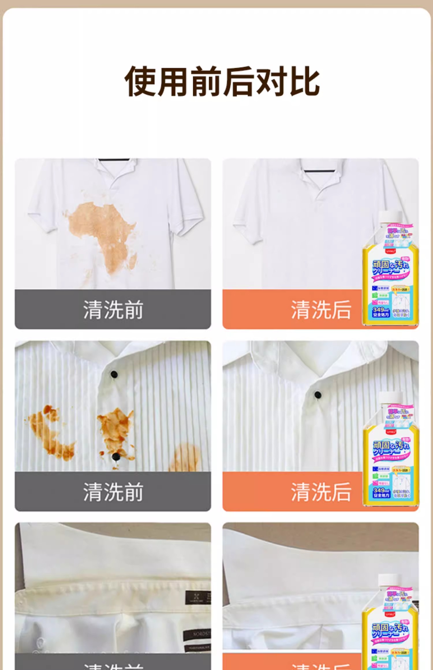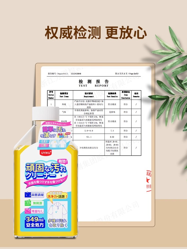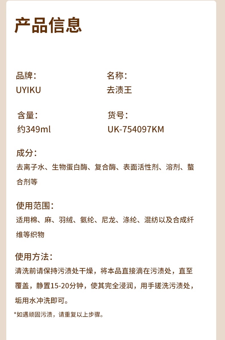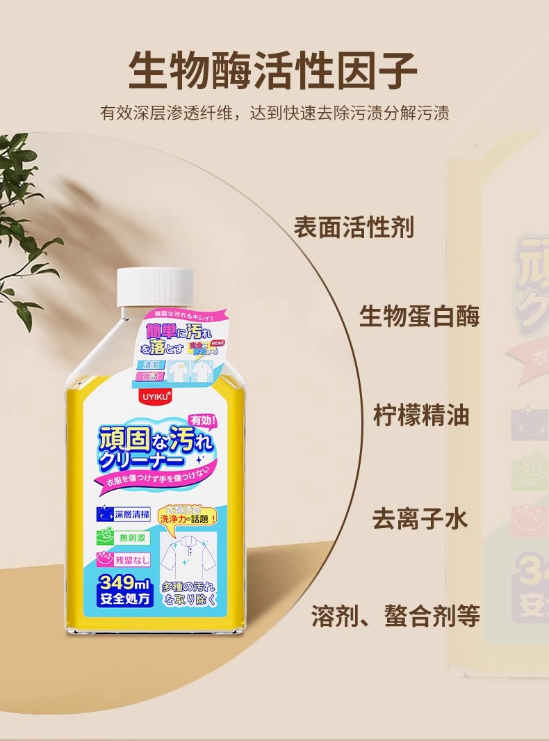UYIKU物以可强力清洁去渍王衣物去污渍洗白神器清洗顽固污渍清洁剂349ML/3瓶 黄色