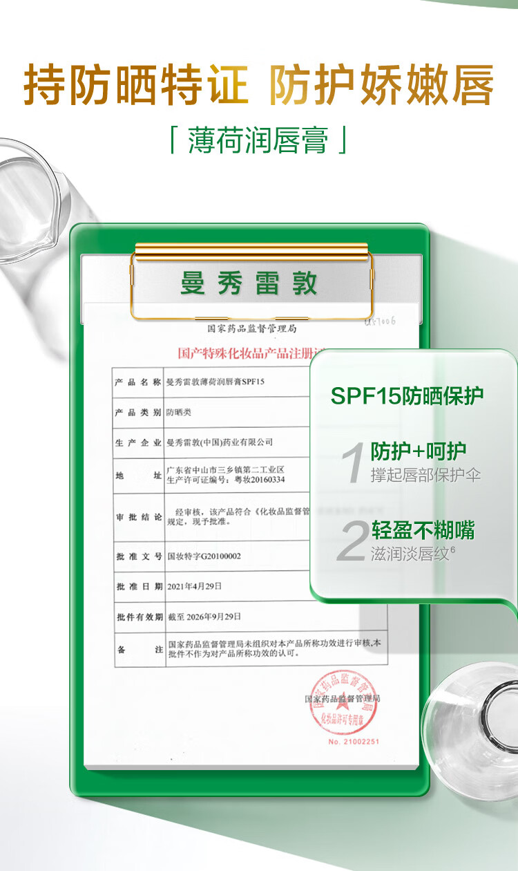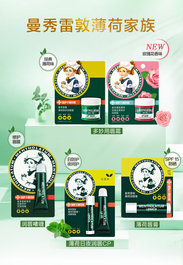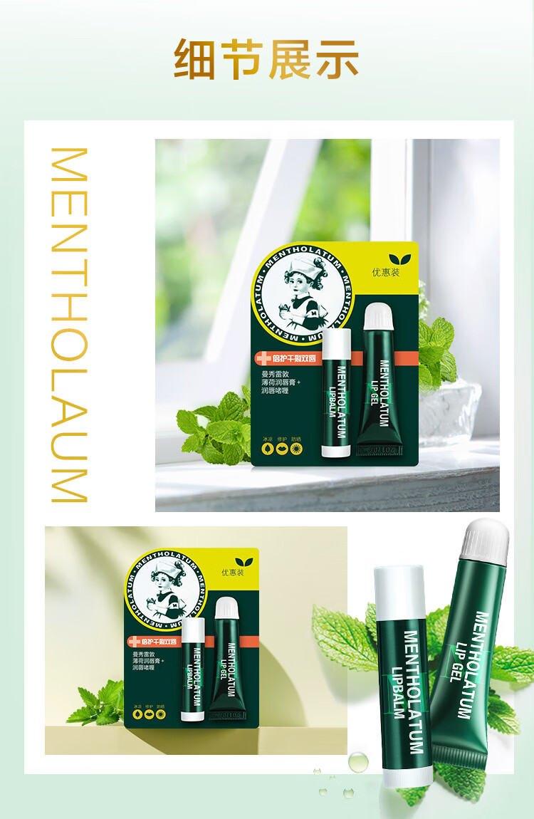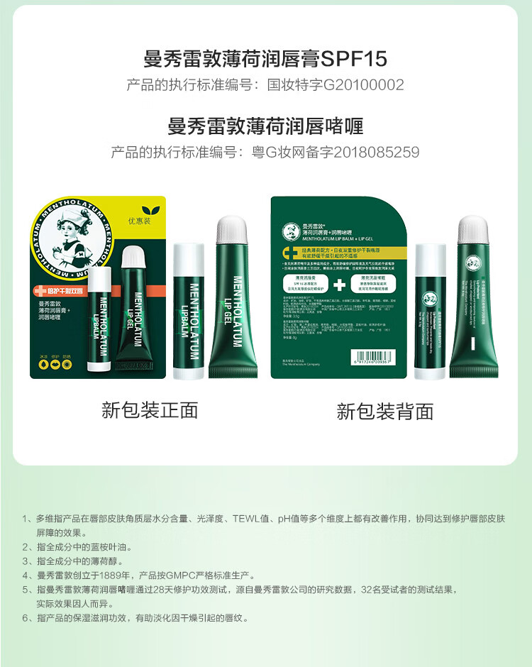 曼秀雷敦薄荷润唇膏3.5g+薄荷修护润唇啫喱8g 单位:支 绿色