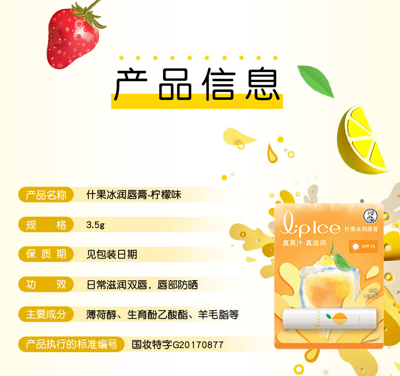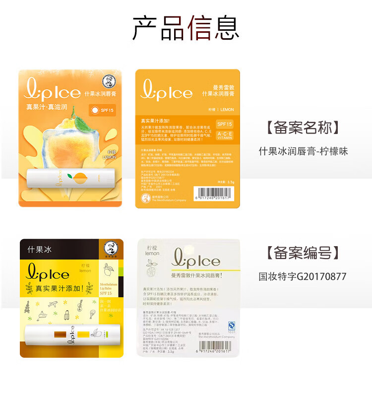曼秀雷敦修护润唇膏 什果冰柠檬味3.5g*2 单位:支 白色
