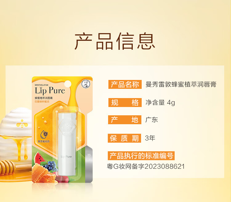 曼秀雷敦蜂蜜修护润唇膏 原味4g*2 单位:支 白色