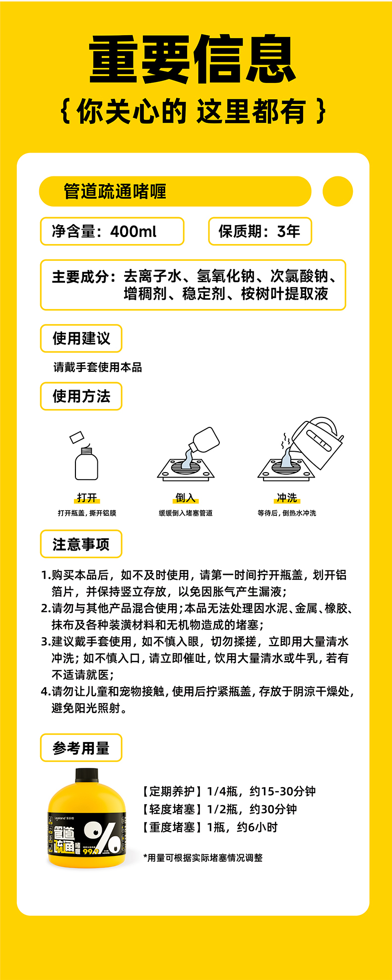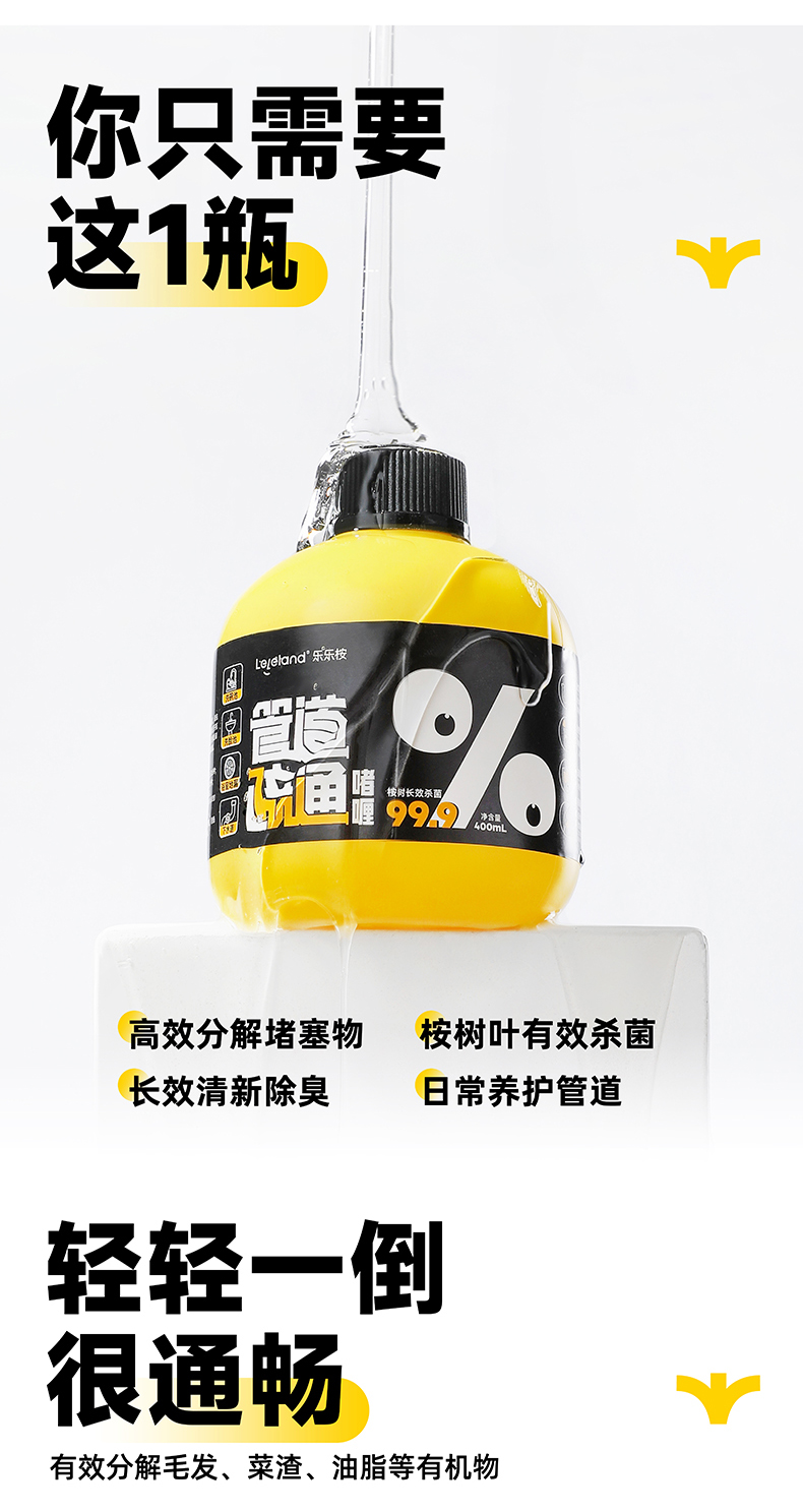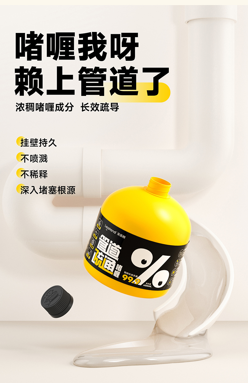 乐乐桉管道疏通强力溶解剂啫喱地漏马桶厨房专用下水道400ml*6瓶 单位:瓶 黄色