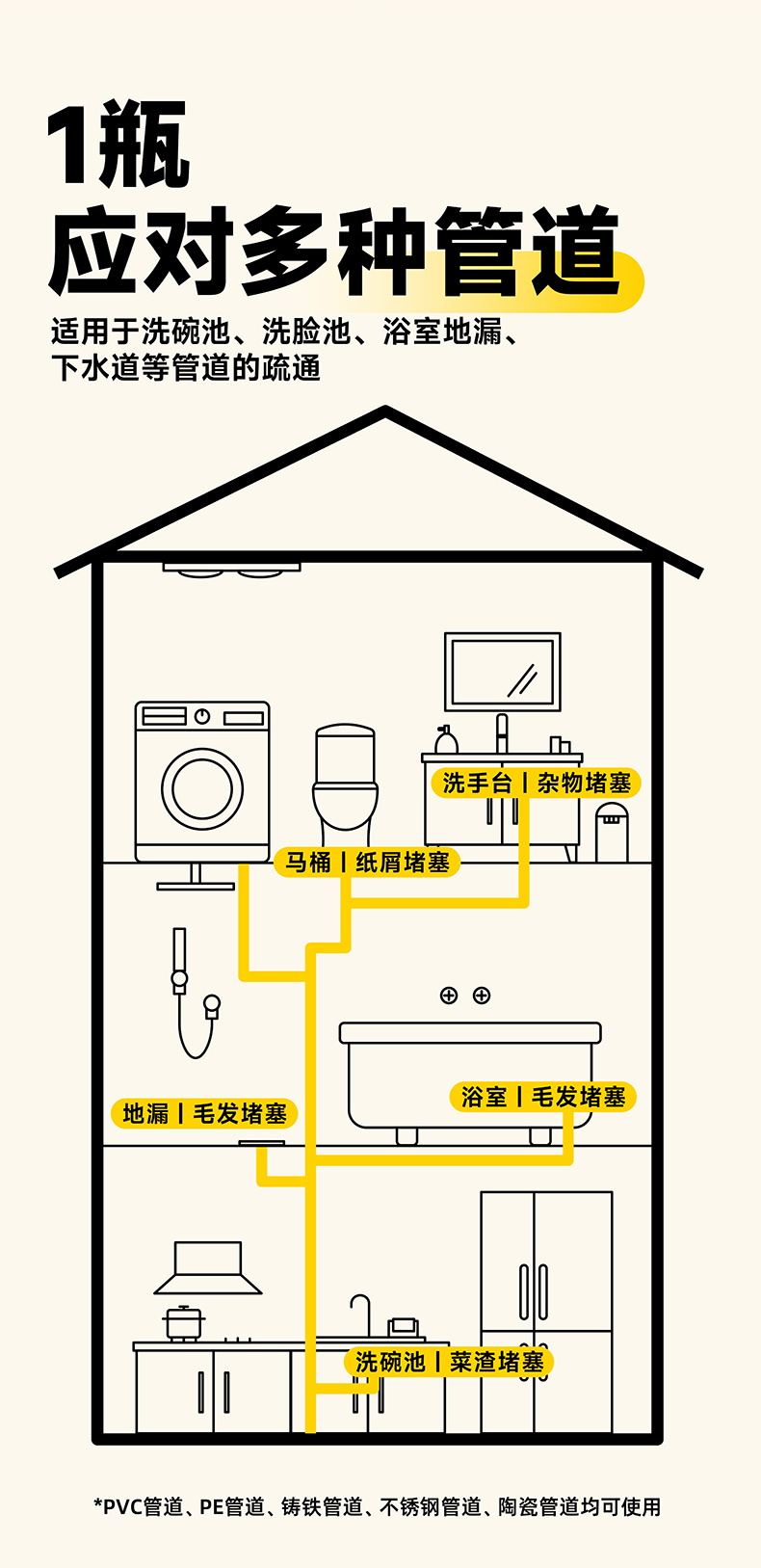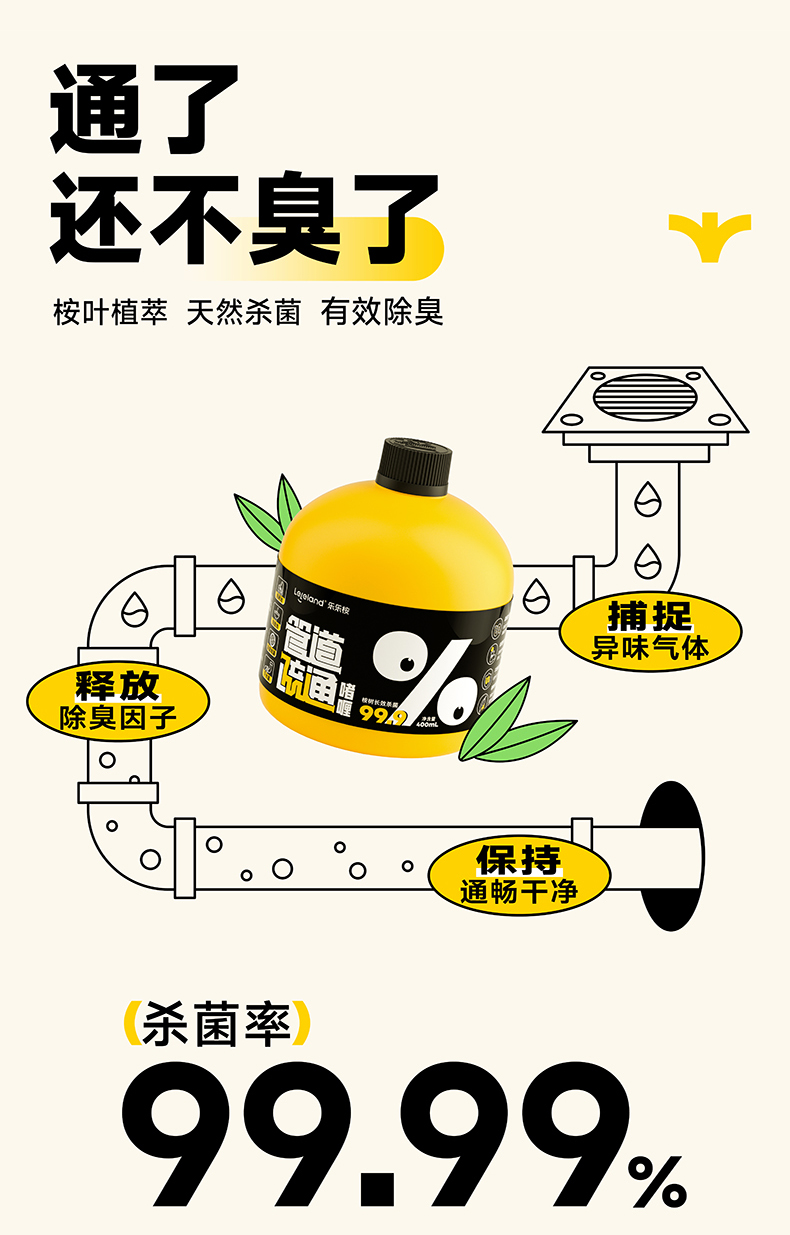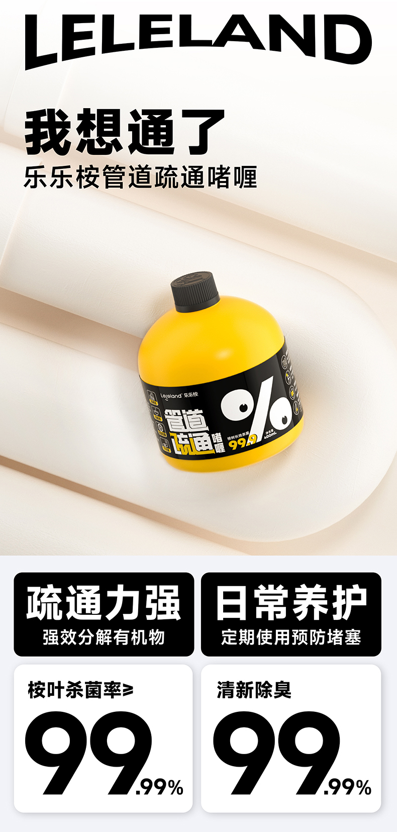 乐乐桉管道疏通强力溶解剂啫喱地漏马桶厨房专用下水道400ml*6瓶 单位:瓶 黄色