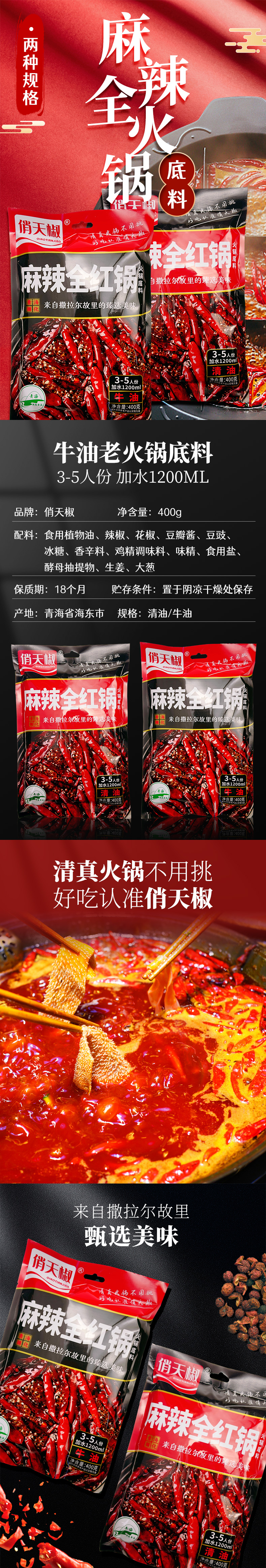 俏天椒清真麻辣全红锅火锅底料400g/袋 黑色
