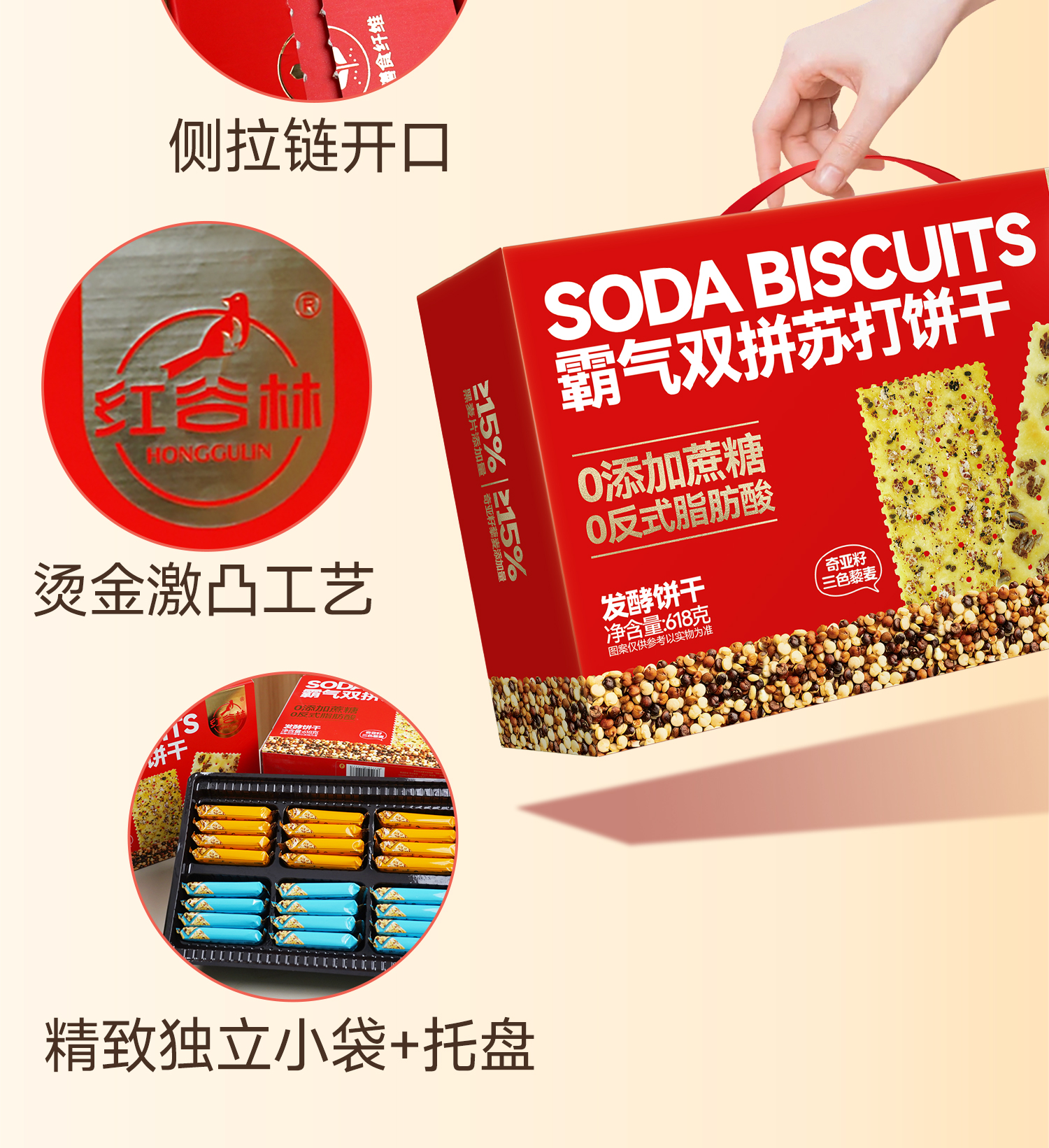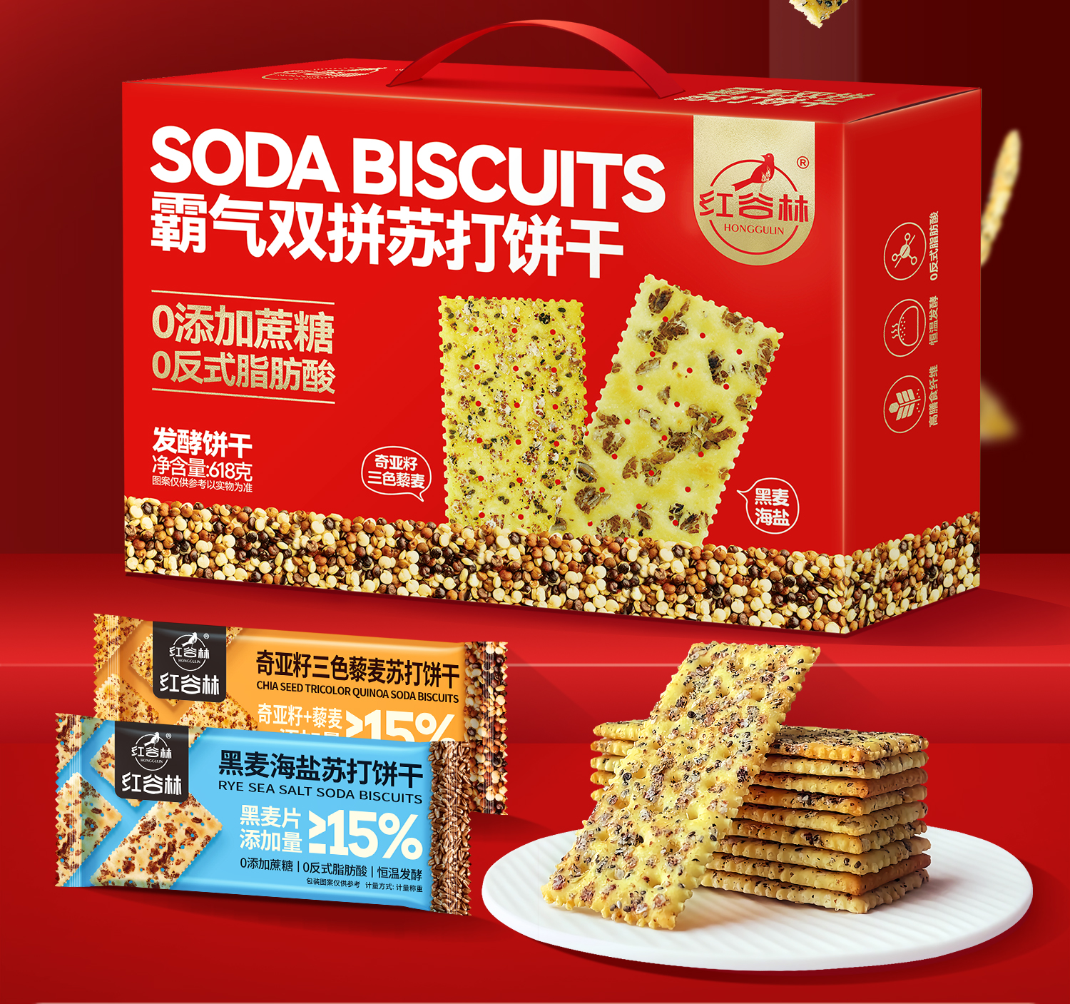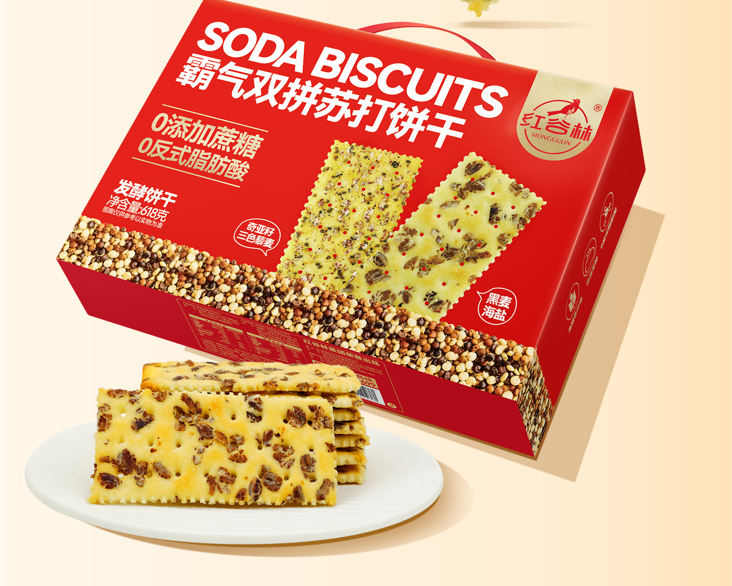 红谷林霸气双拼苏打饼干618克*2盒(单位:盒) 枫叶色