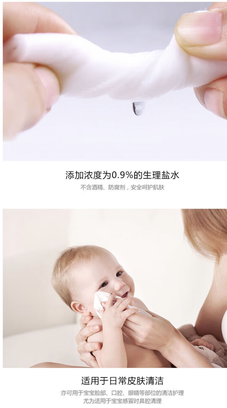 全棉时代生理盐水清洁湿巾60g平纹无纺布,15x20cm,20片/盒(单位:盒) 象牙色