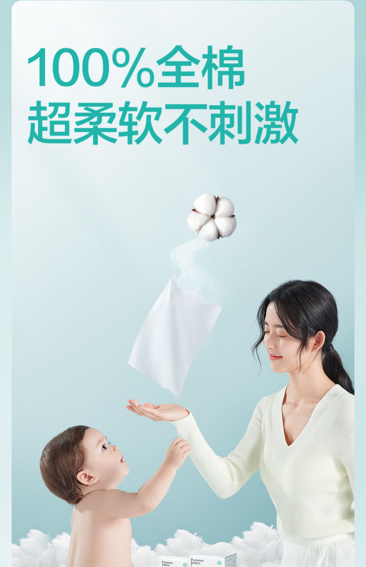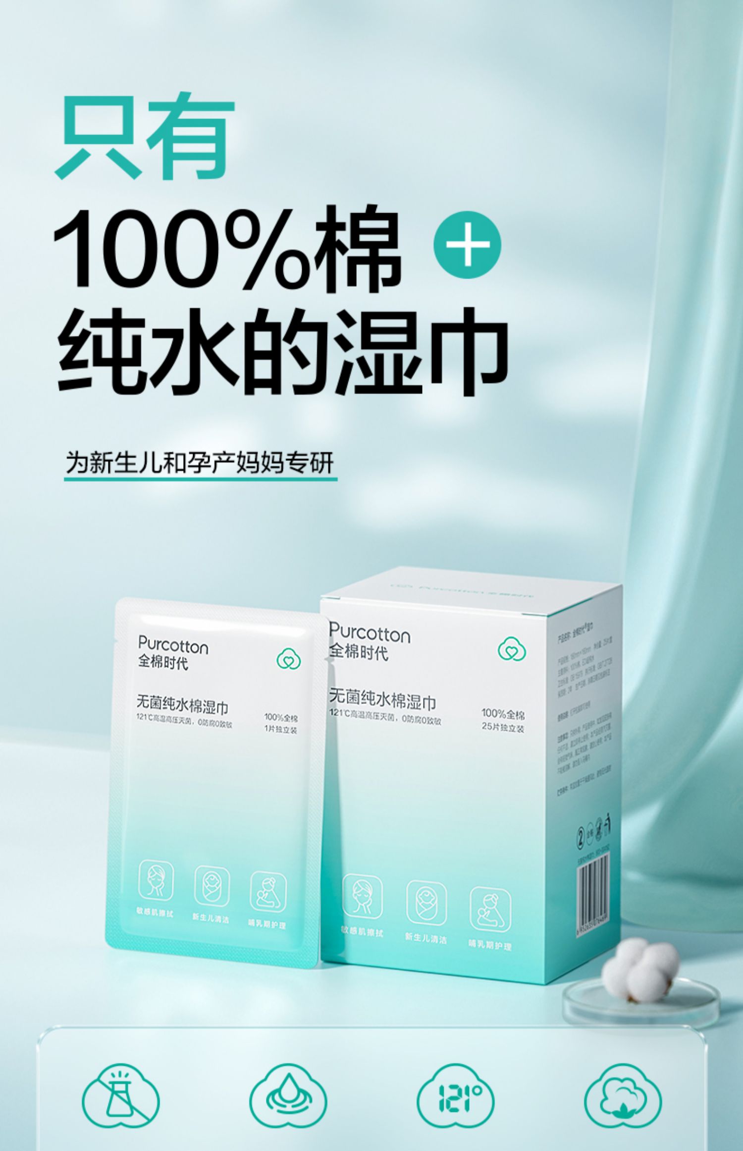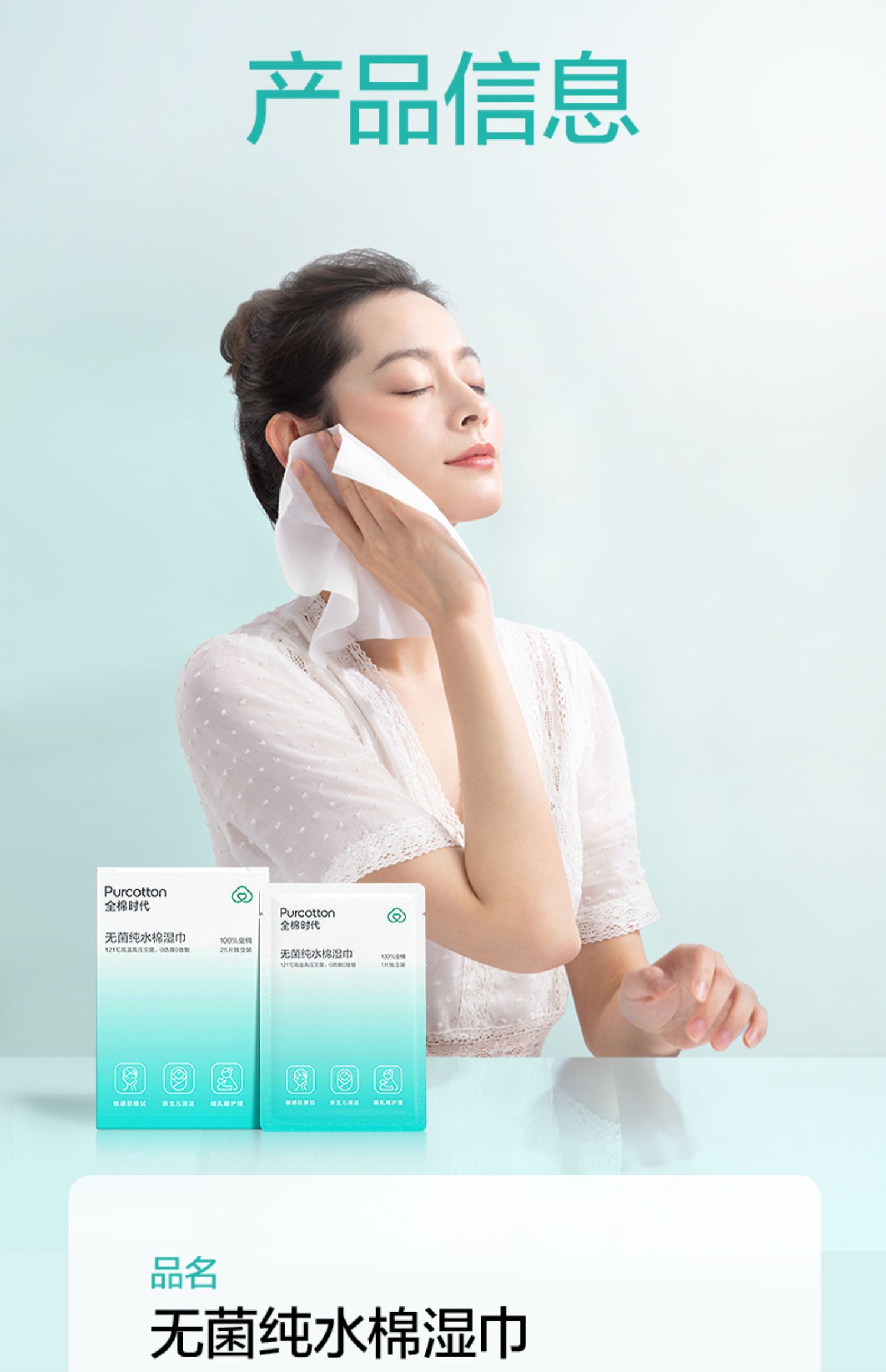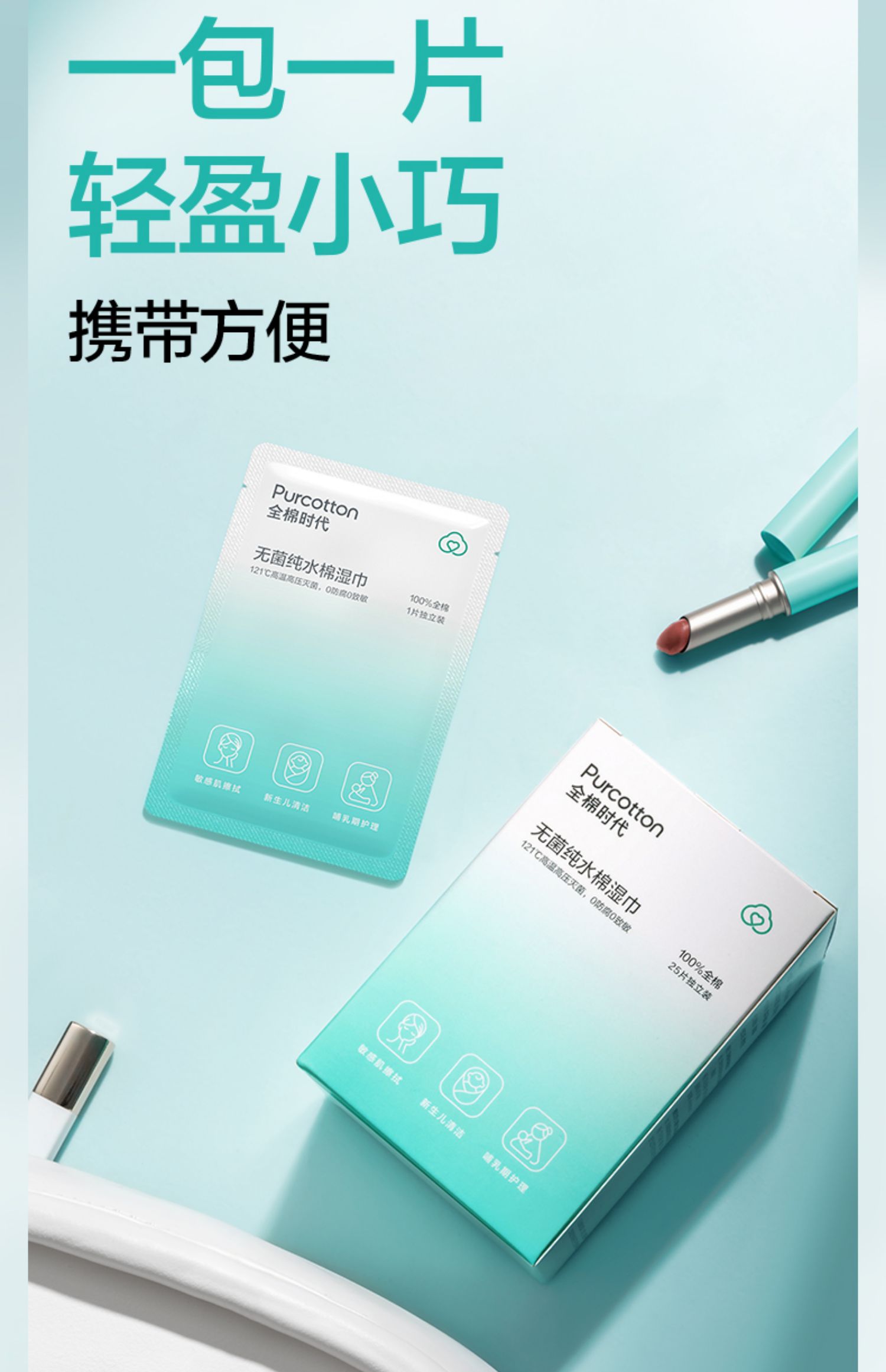 全棉时代无菌纯水棉湿巾平纹50g18cm×16cm,25片/盒(单位:盒) 水蓝色