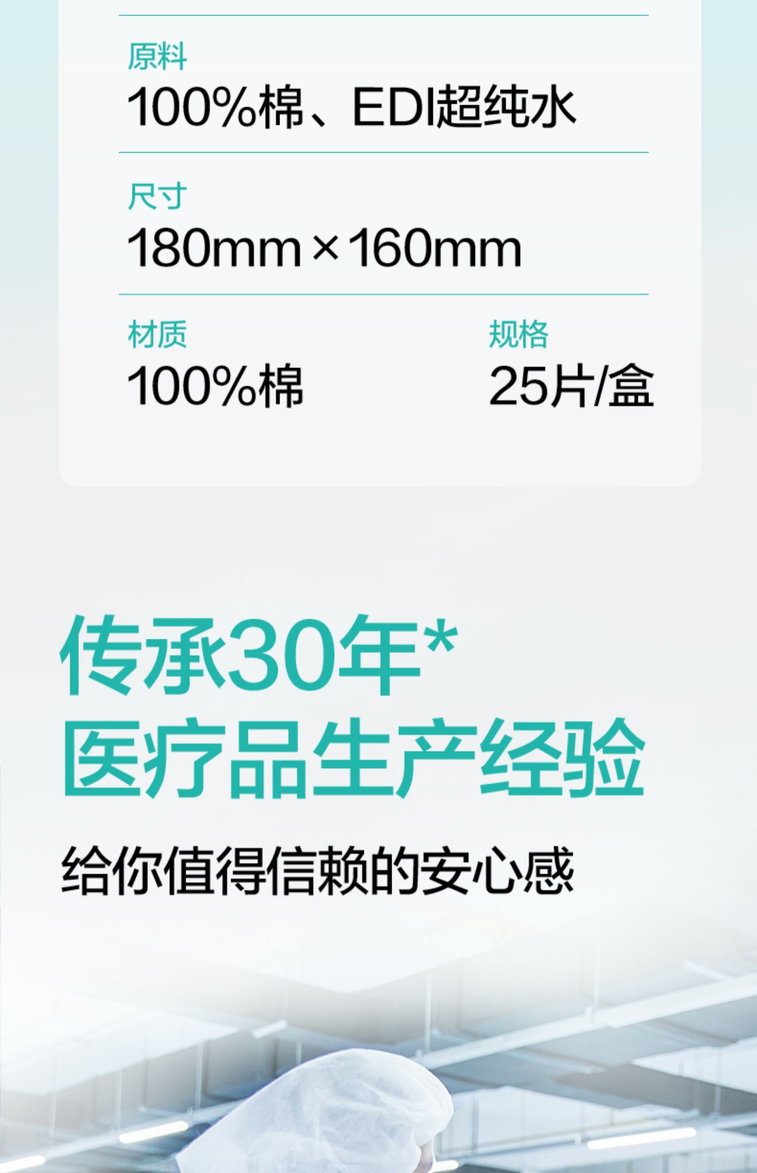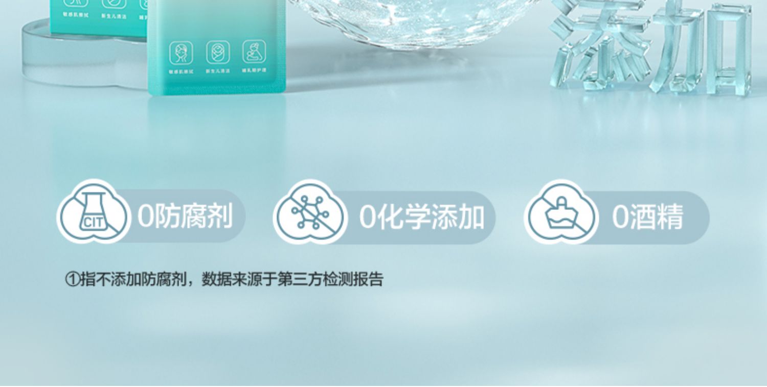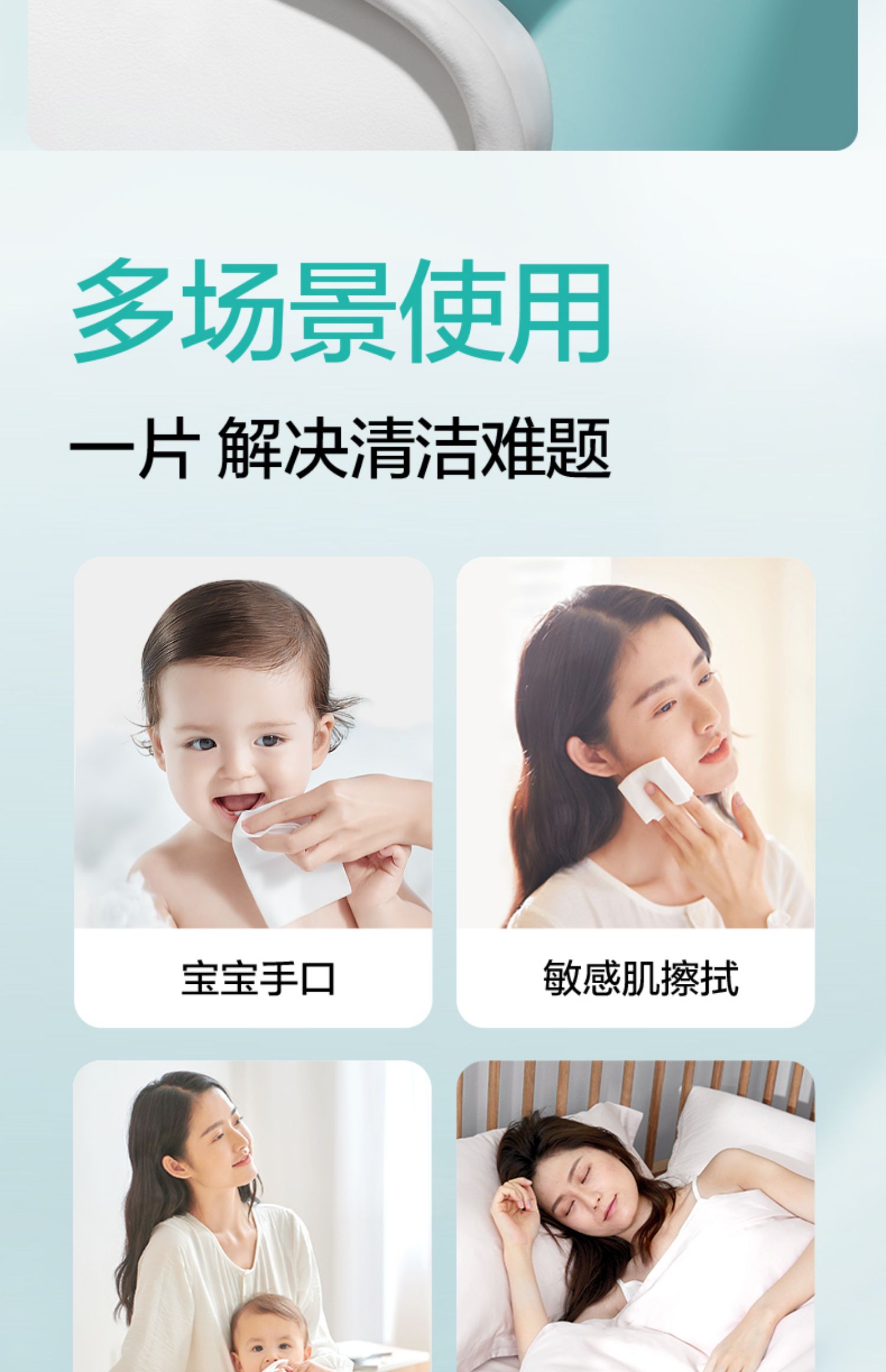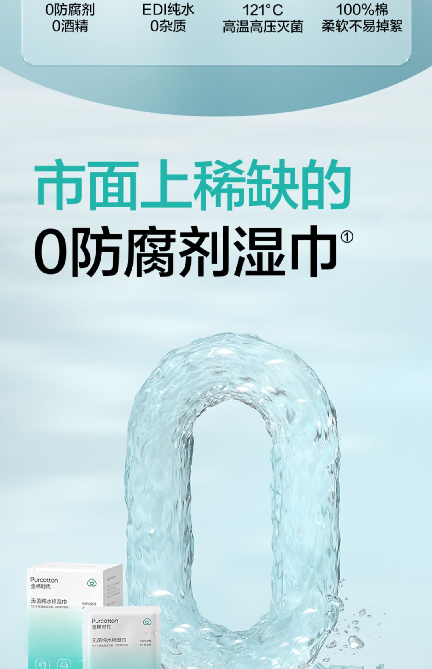 全棉时代无菌纯水棉湿巾平纹50g18cm×16cm,25片/盒(单位:盒) 水蓝色