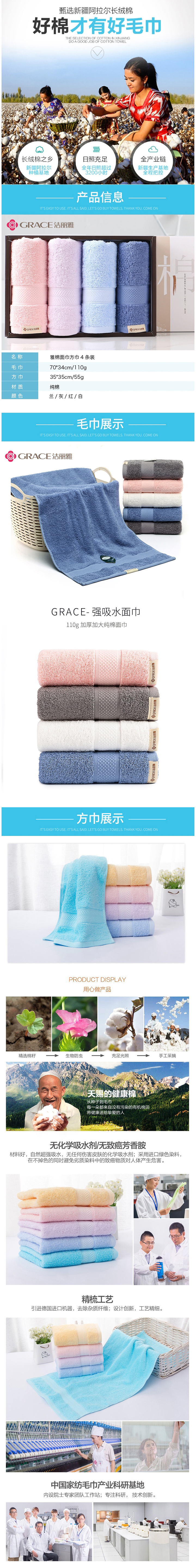 洁丽雅 雅棉7面巾方巾4条装毛巾 四色混装发货(单位:盒) 白 蓝 粉 灰(随机)