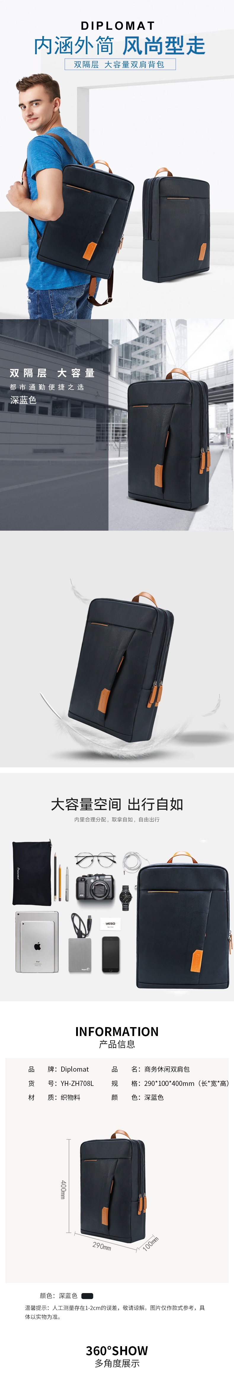 Diplomat外交官两件套(深蓝色双肩背包+深蓝色收纳袋) YH-ZH708L深蓝色 深蓝色