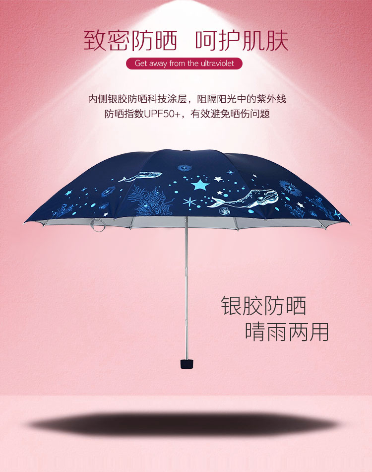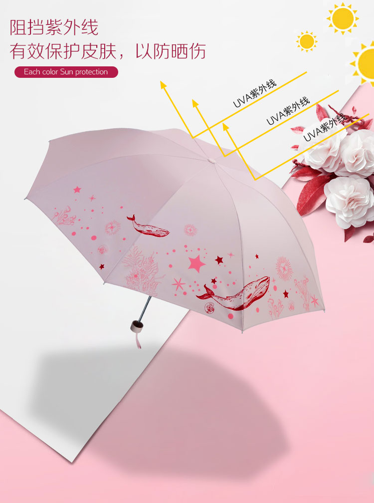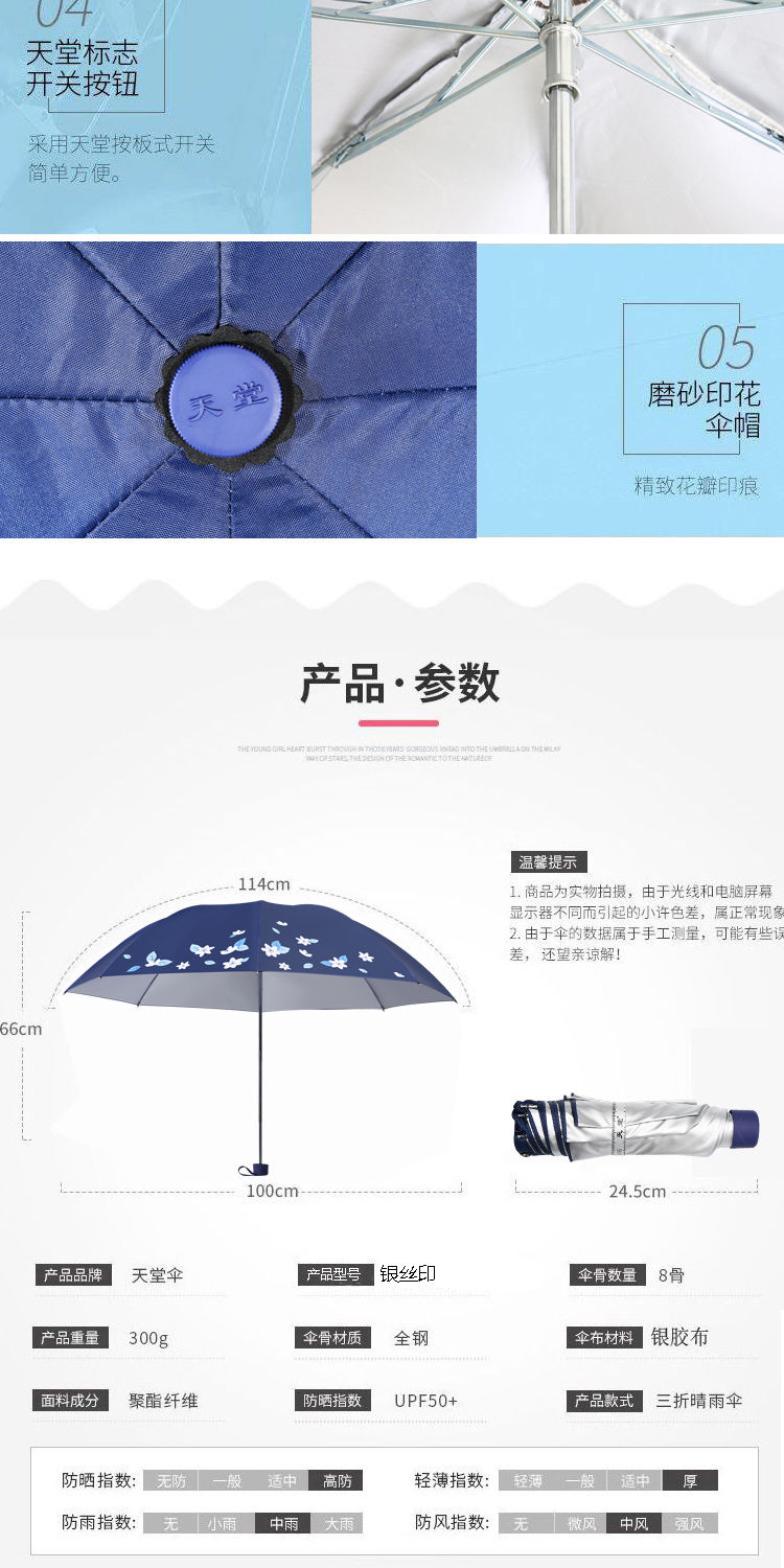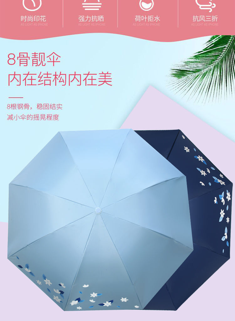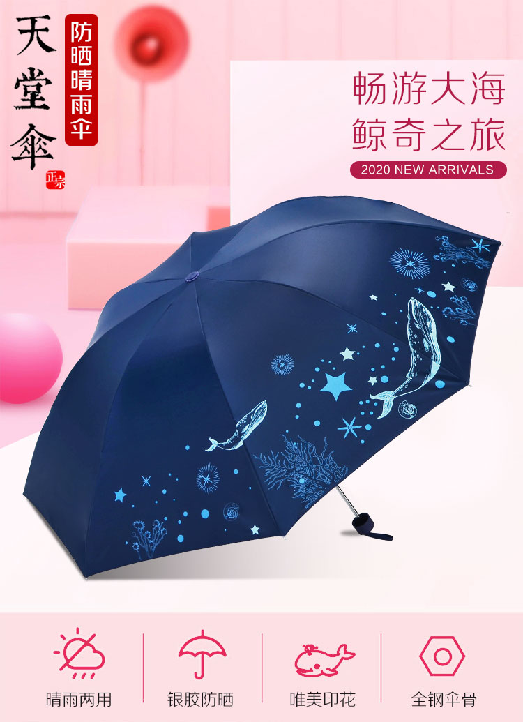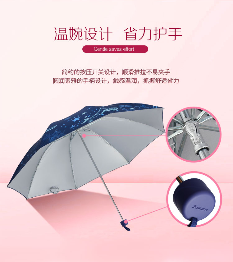 天堂伞 三折伞57CM*8K 336T银丝印 (DZ SHYC) 混色