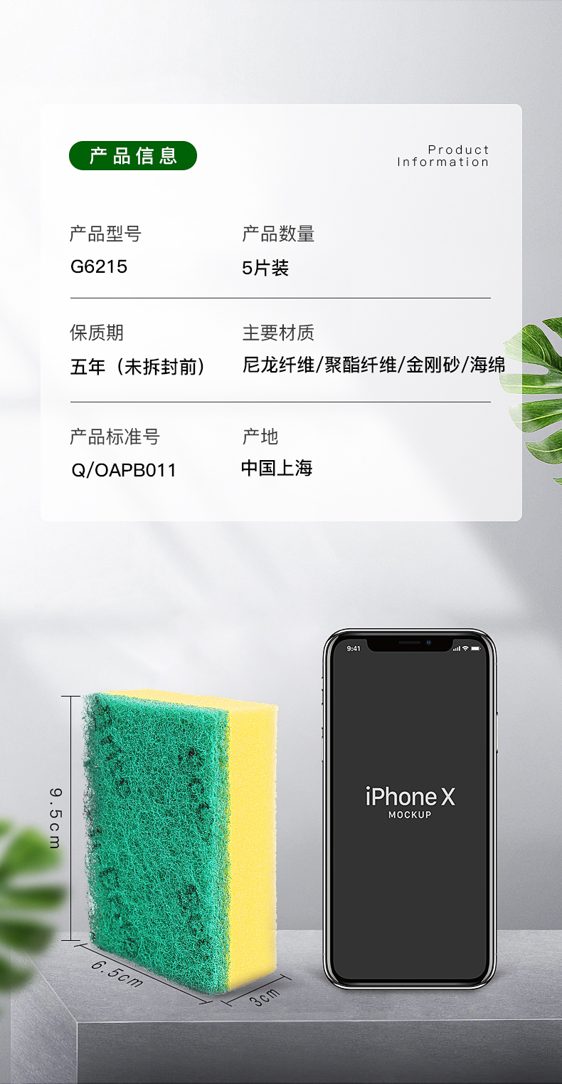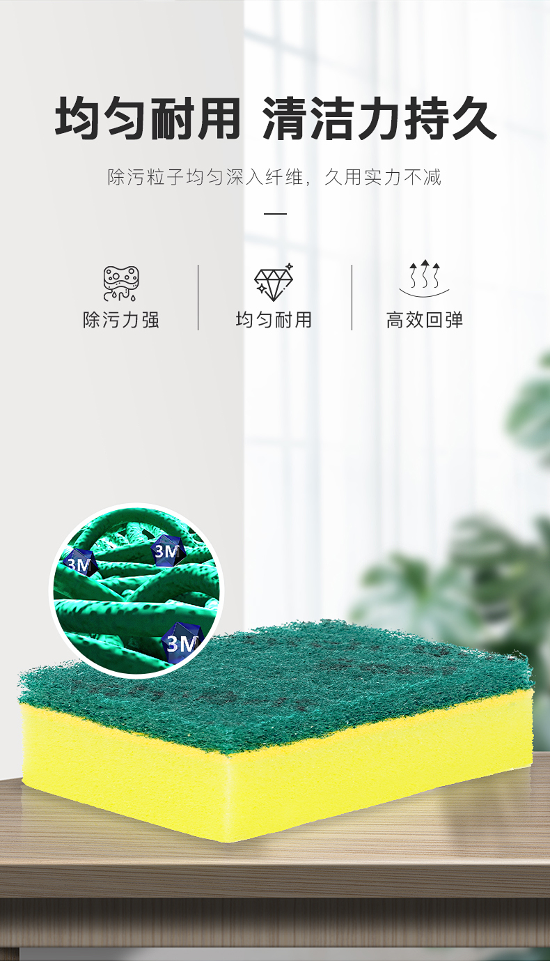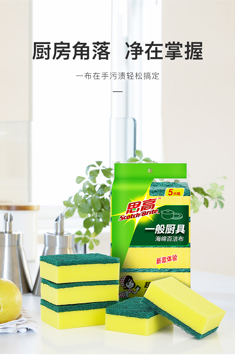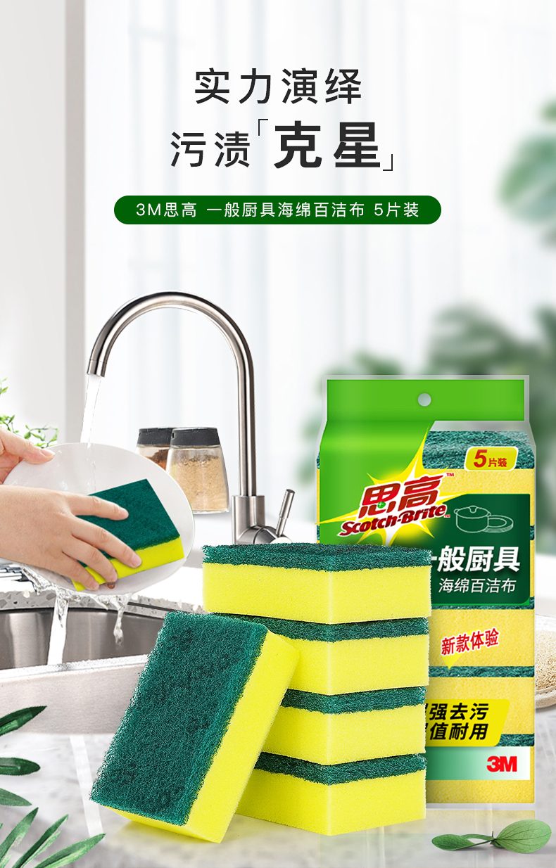 3M 刷碗布百洁布思高G6215海绵百洁布一般厨具家之常备经典款 去油污 5片装 图片色 图片色