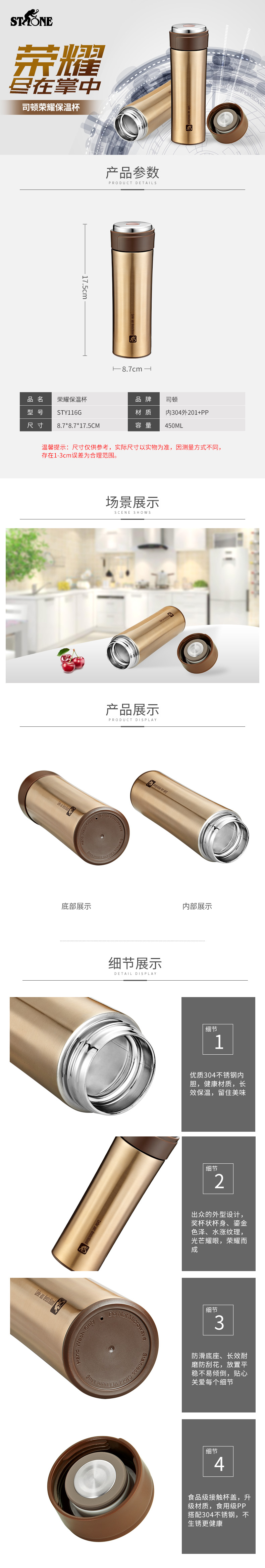 司顿随手杯 STY116G 450ML(单位:个) 金色
