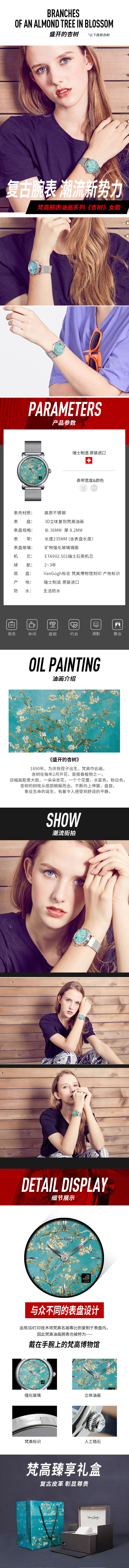 梵高(VanGogh)瑞士女士石英手表 3D打印油画表面钢带个性网红潮牌博物馆正版原装进口女表 盛开的杏树 银色