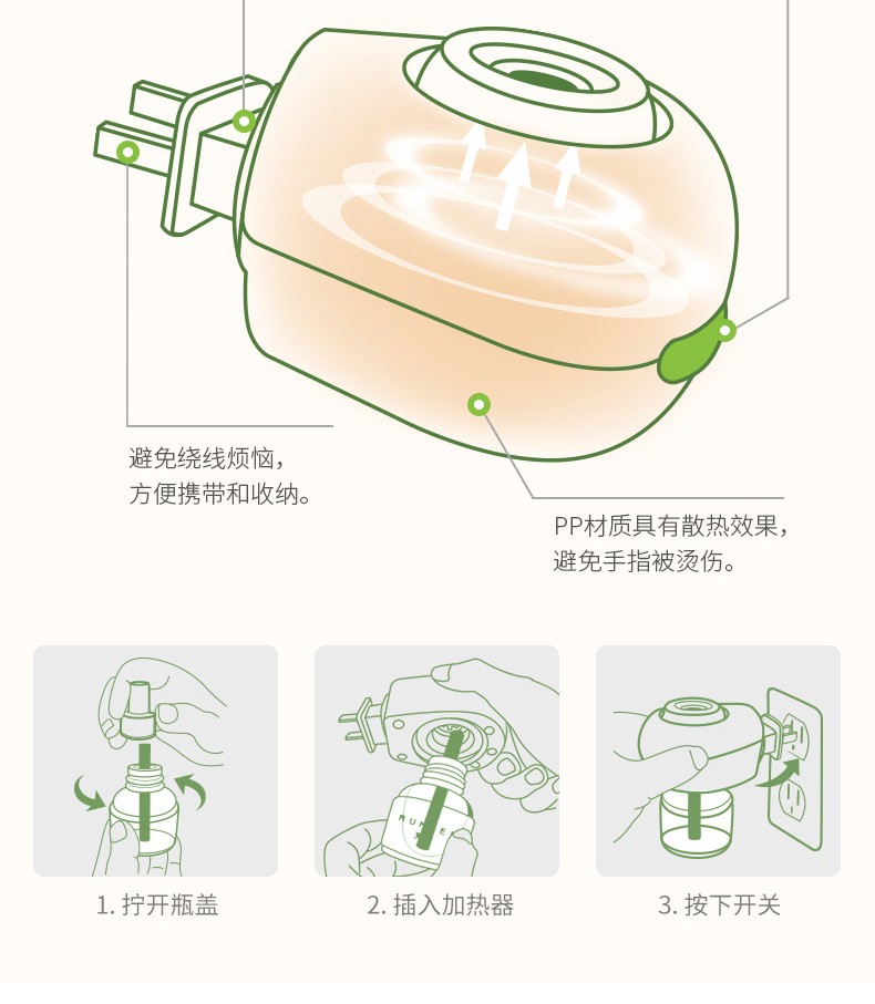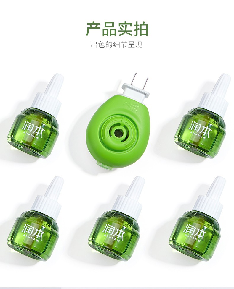 润本电热蚊香液(无香型) 驱蚊液45mlx3瓶+加热器x1+驱蚊贴36片 5件套 绿色