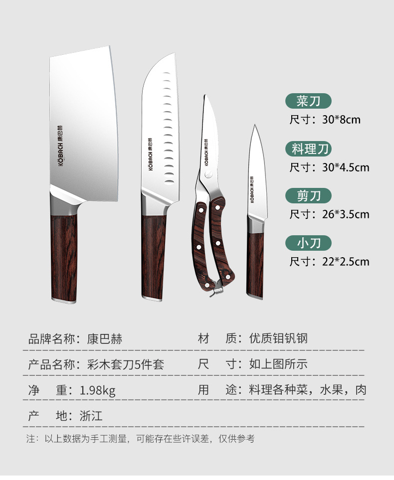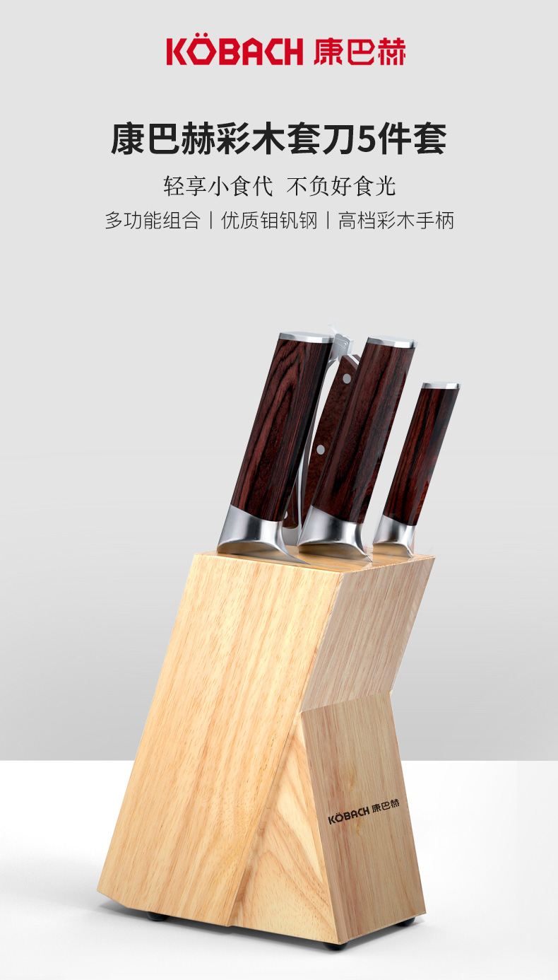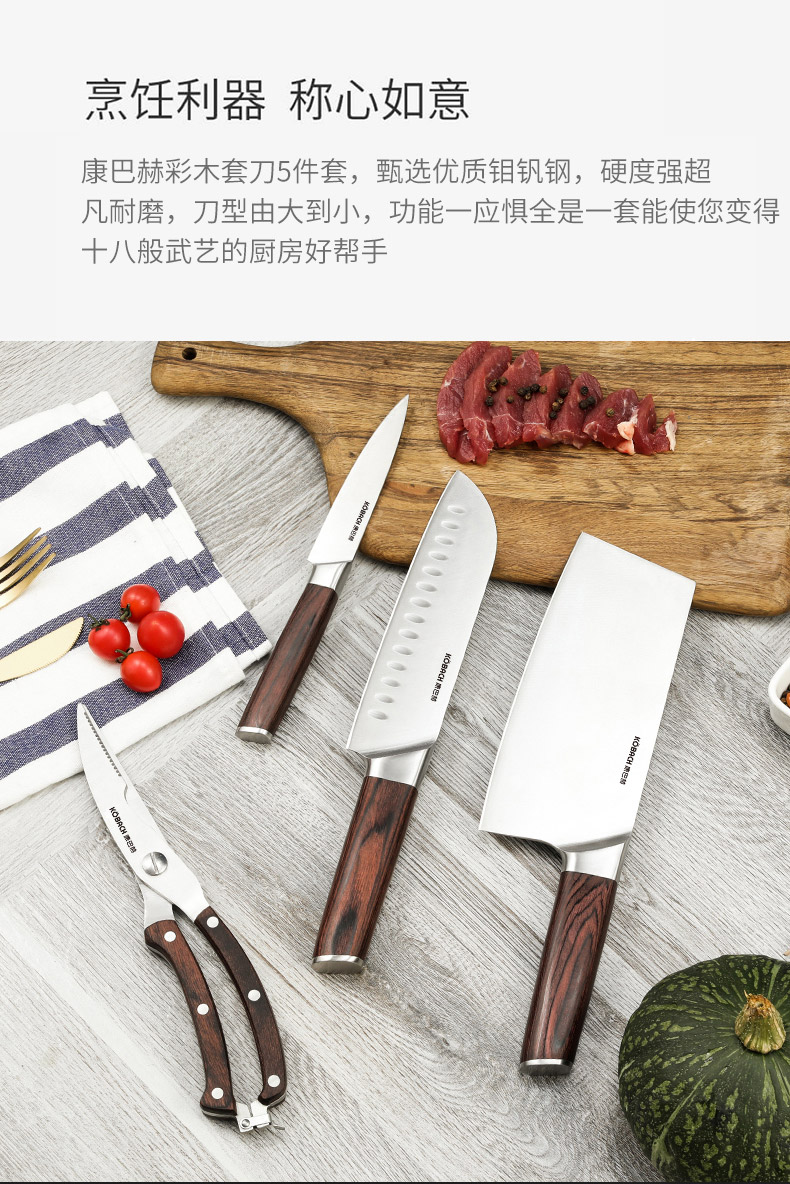康巴赫(KBH) 高硬度彩木刀具五件套 KDT5A【14050060】 不锈钢色