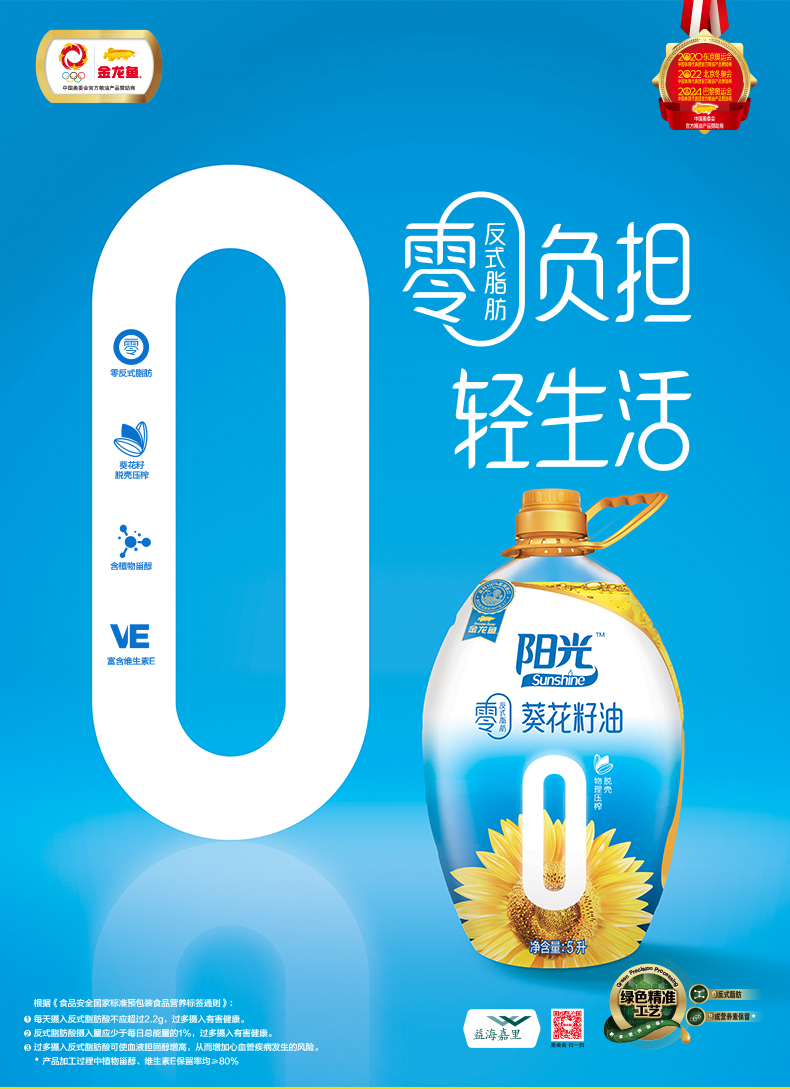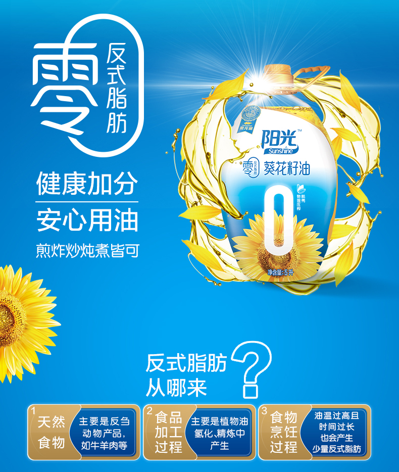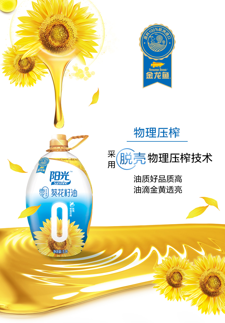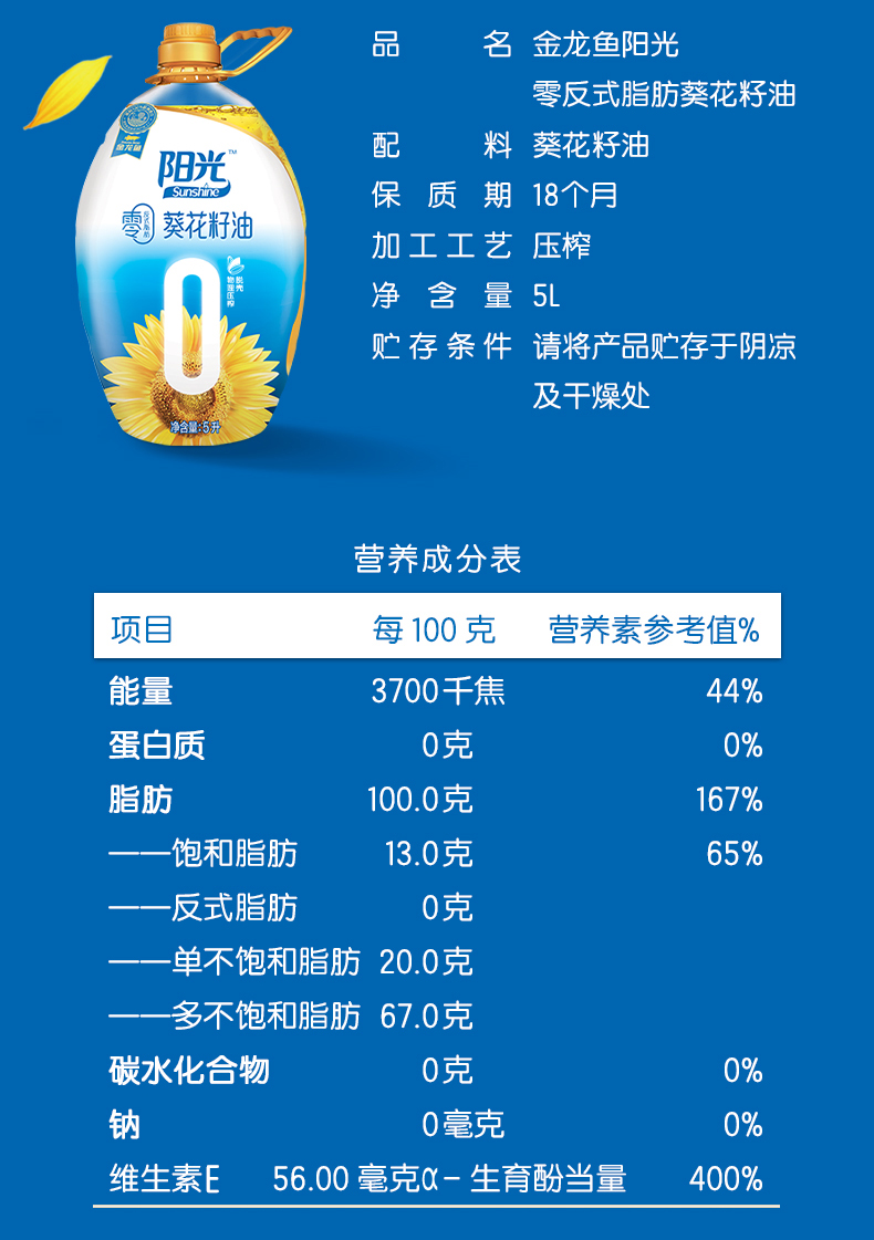 金龙鱼阳光零反式脂肪葵花籽油5L 金色