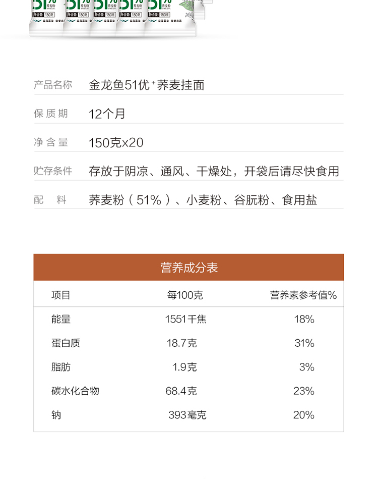 金龙鱼优+荞麦挂面150g 白色