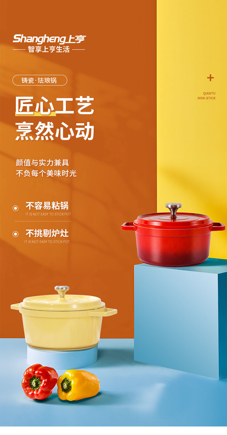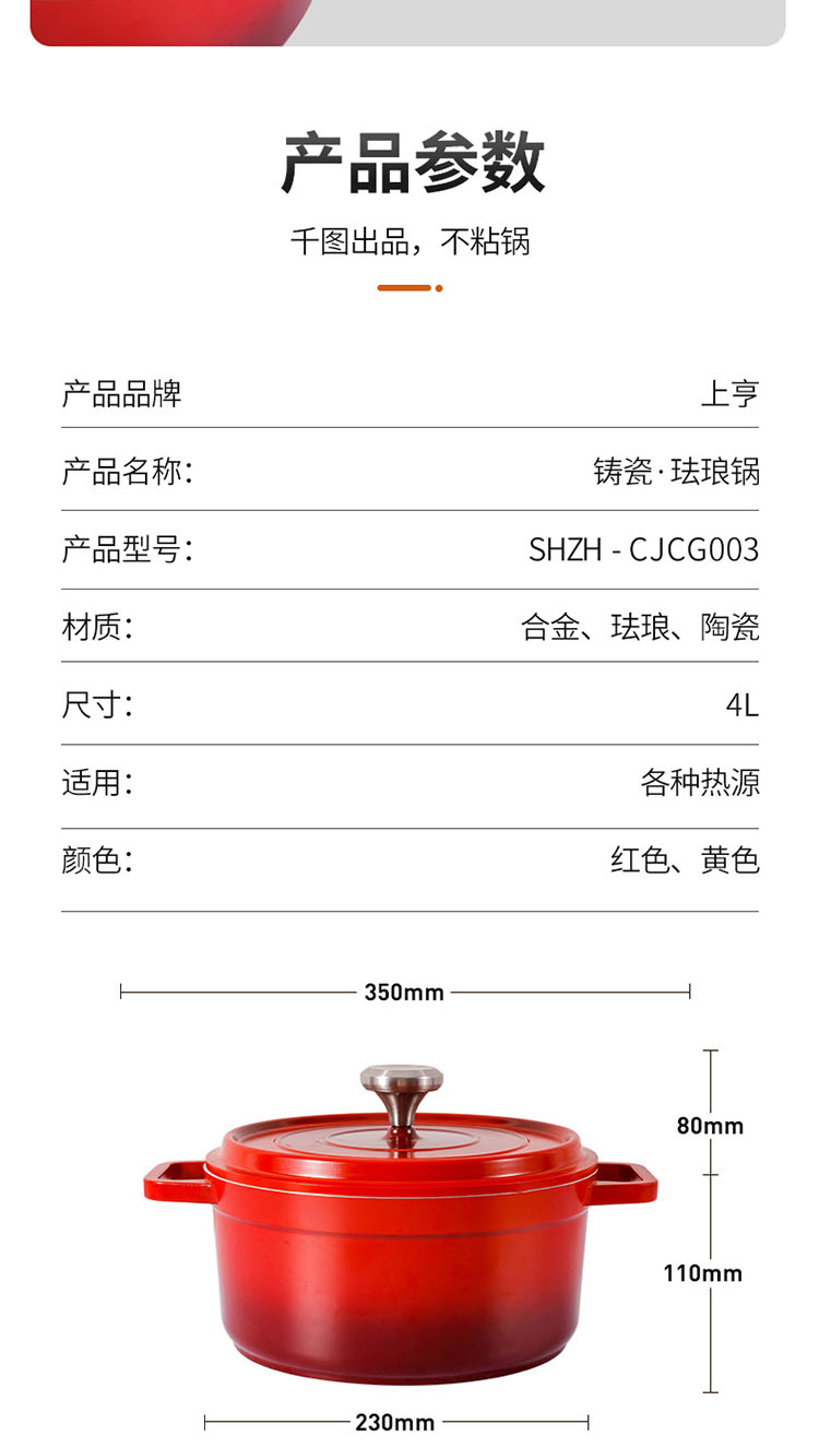 上亨(shangheng)家用煲汤珐琅锅 珐琅锅闪亮黄-24CM/红色SHZH-CJCG003 黄色