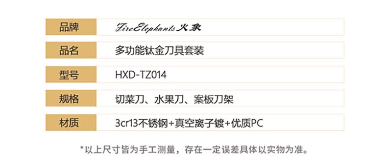 火象 多功能钛金刀具套装HXD-TZ014 香槟色