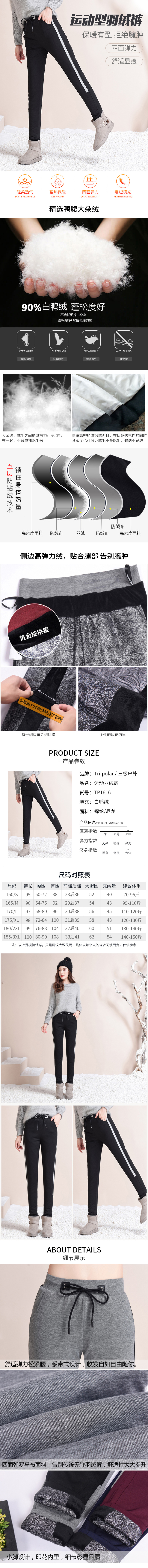 Tri-polar 羽绒裤女外穿高腰弹力运动休闲小脚裤大码TP1616(单位:条) 黑色 2XL