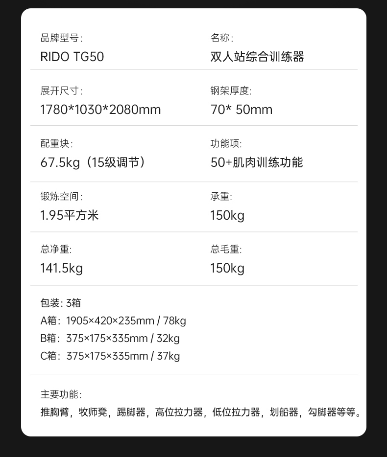 力动RIDO FITNESS 单站多功能综合训练器TG50 黑色