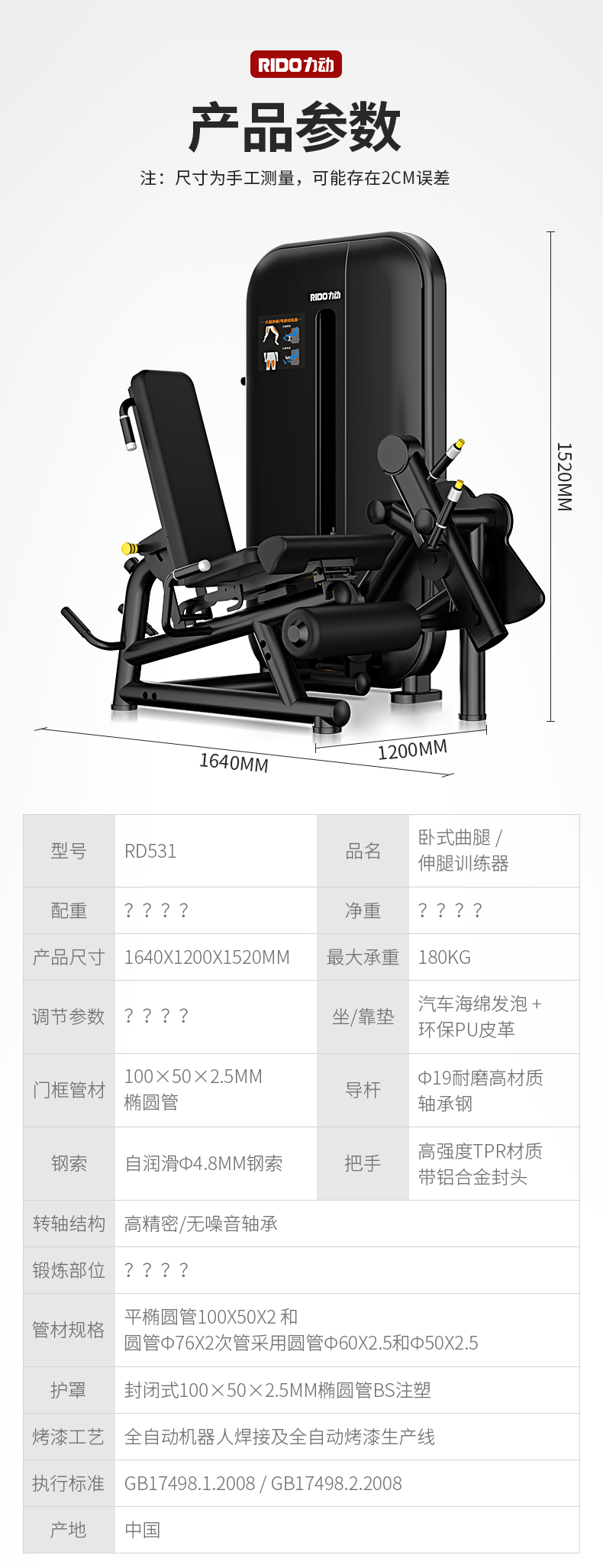 力动 RIDO FITNESS 卧式曲腿/伸腿训练器RD531 黑色