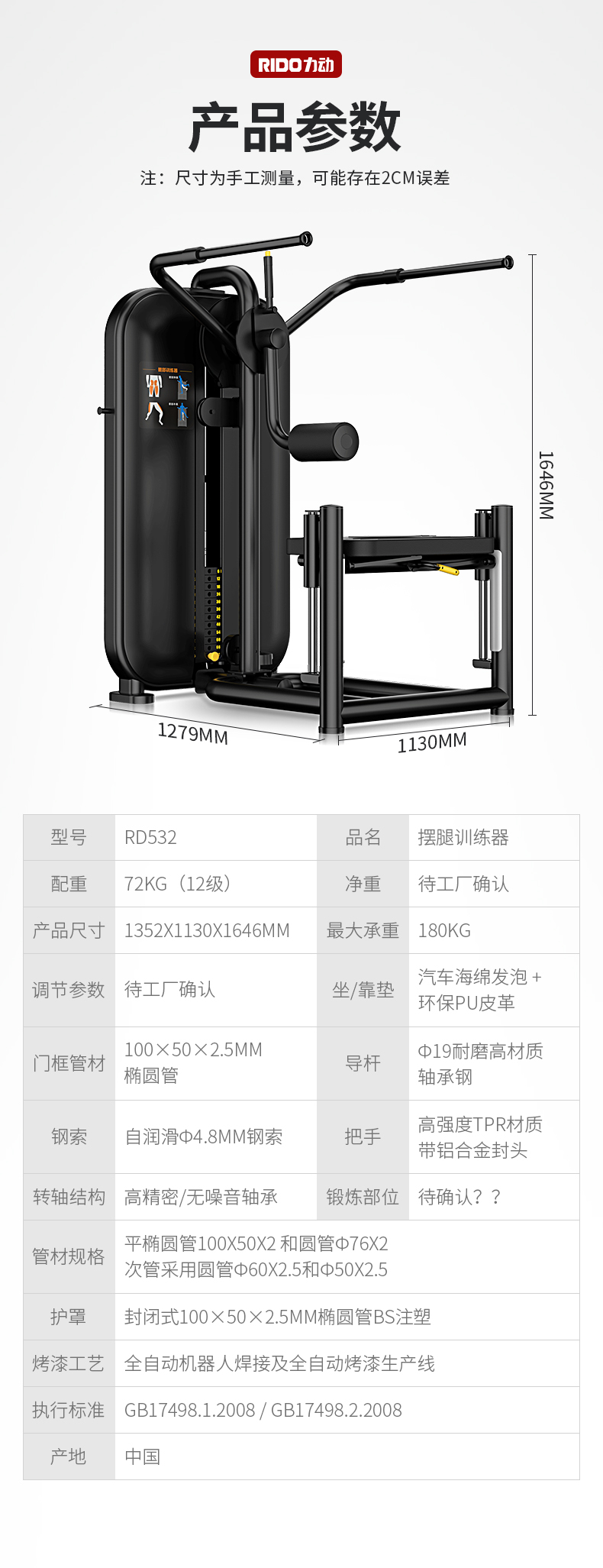 力动 RIDO FITNESS 摆腿训练器RD532 黑色