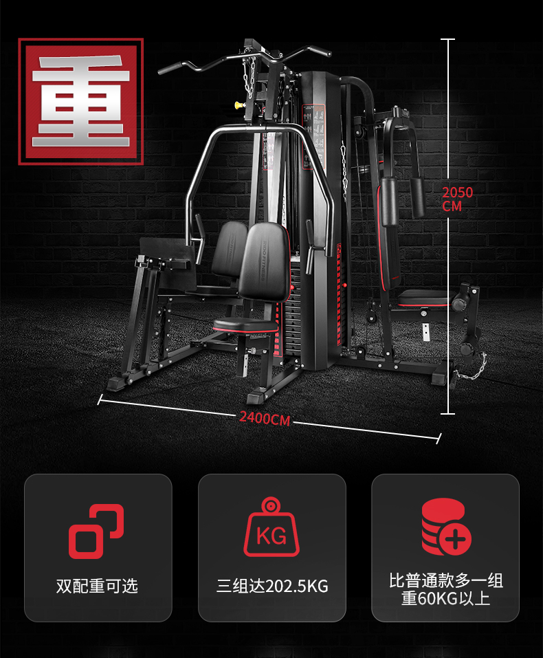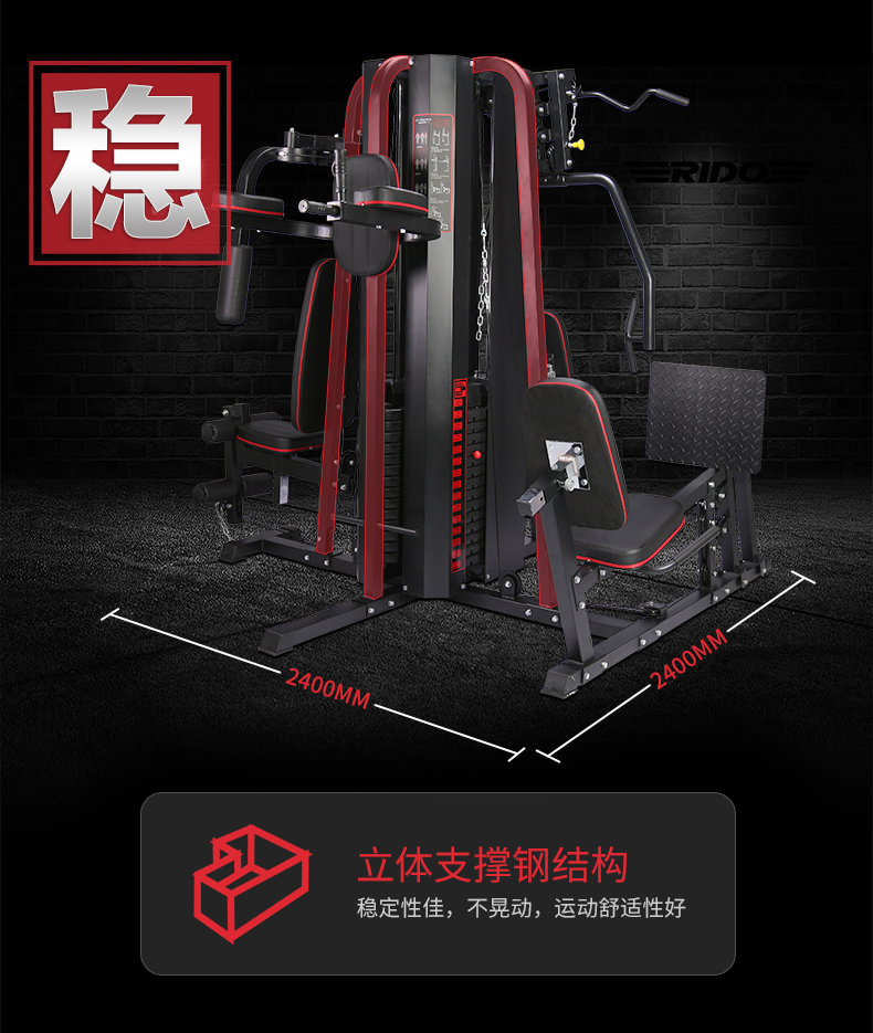 力动RIDO FITNESS五、六站多功能综合训练器TG75 黑色