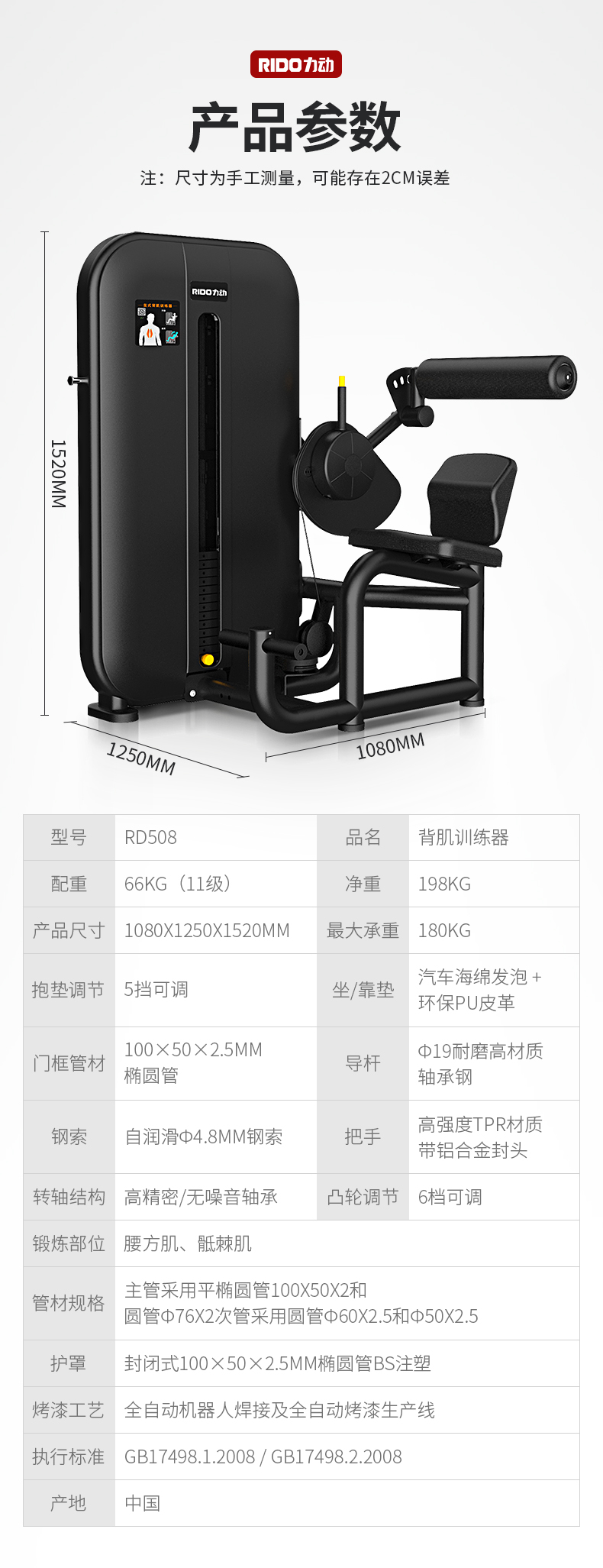 力动 RIDO FITNESS Explore系列 背肌训练器RD508 黑色