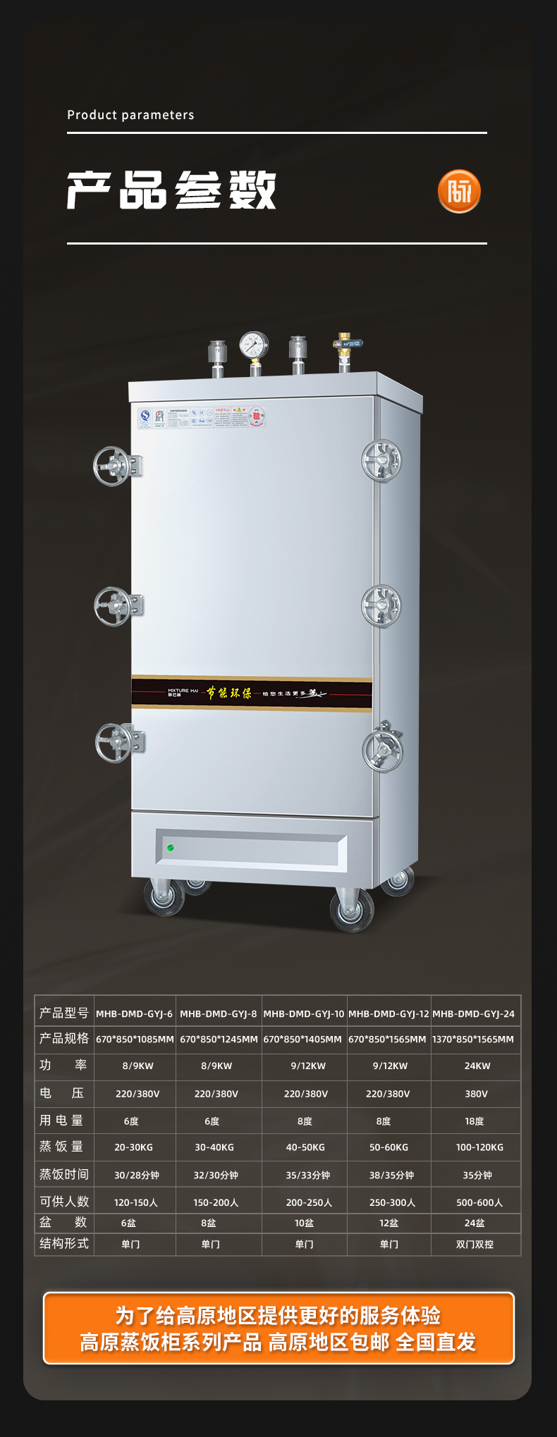 脉巴赫 商用高原蒸饭柜 MBH--GYJ-12 电蒸柜蒸饭车 高原款 工程定制 12盘 灰色