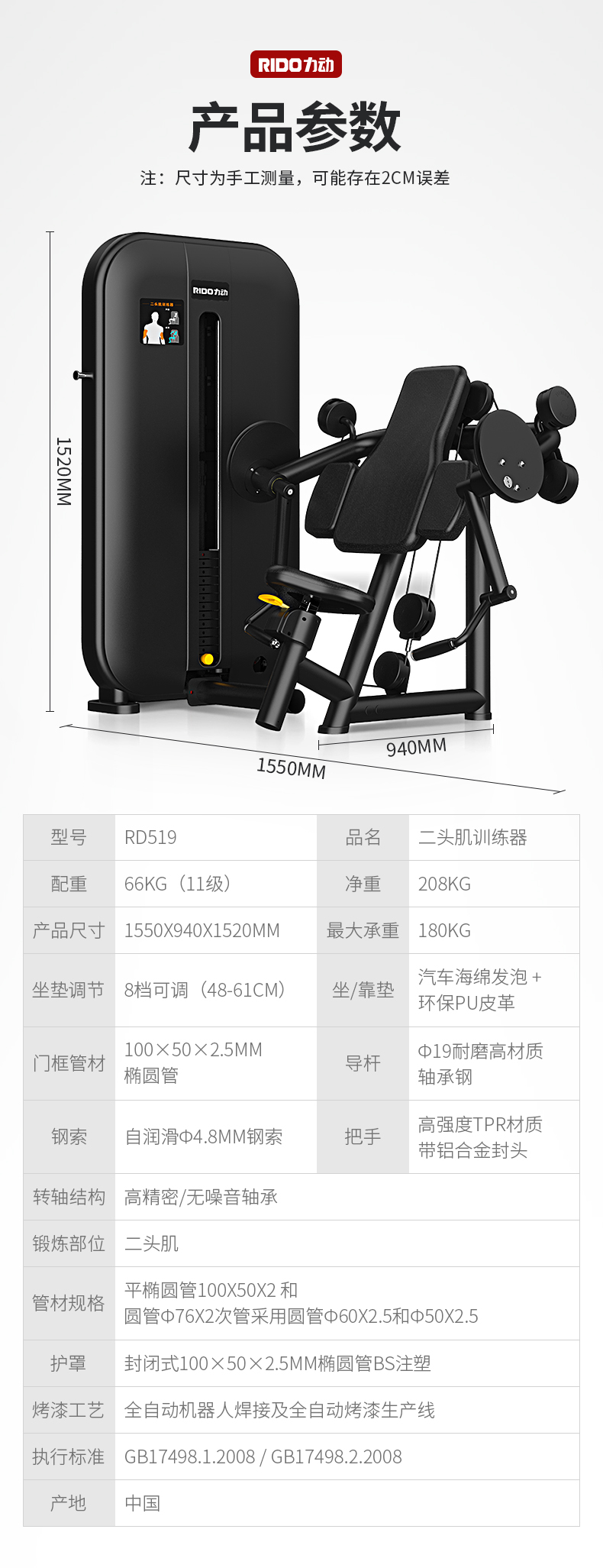 力动 RIDO FITNESS Explore系列 二头肌训练器RD519 黑色