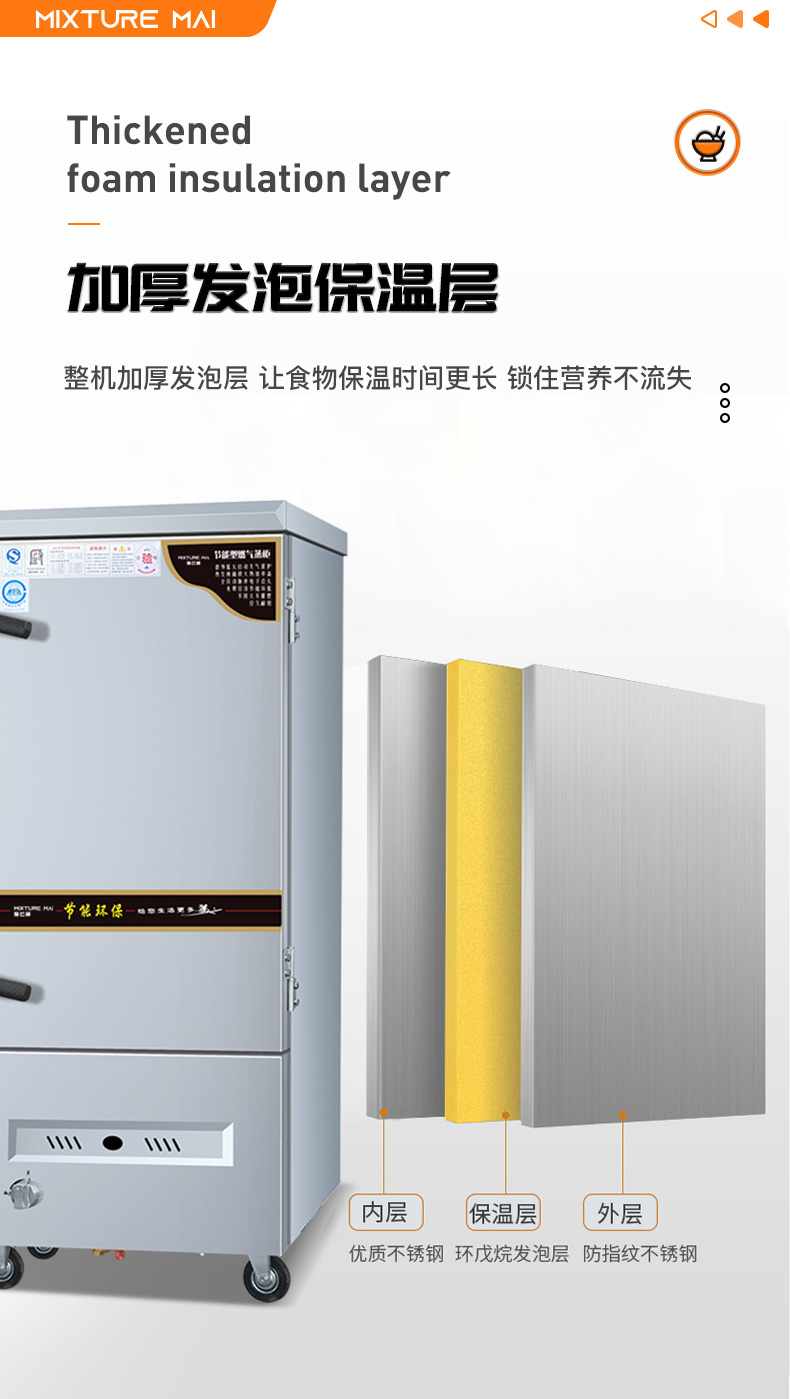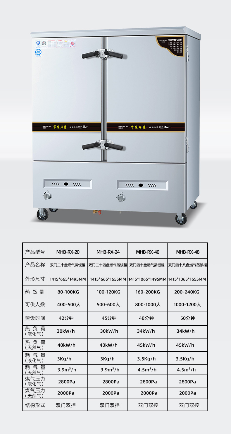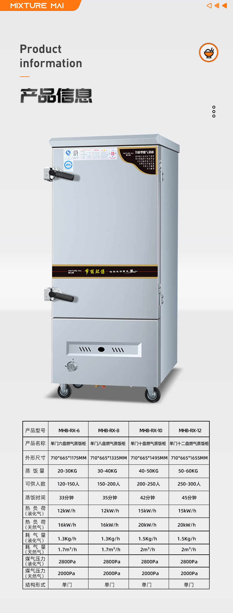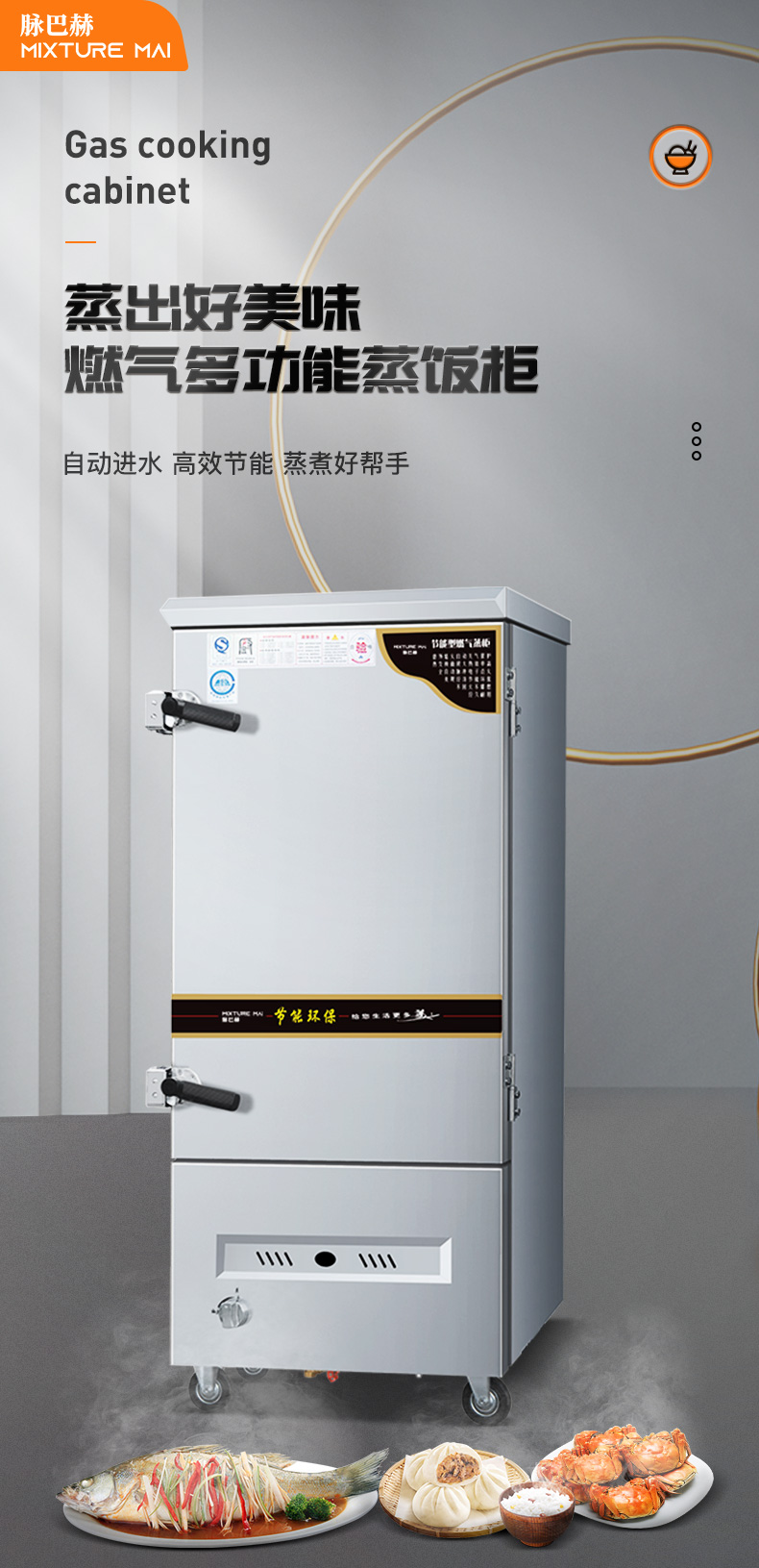 脉巴赫 燃气多功能蒸饭柜商用 MBH-RX-10 单门10盘 食堂单位学校米饭包子馒头面食蒸柜车 灰色