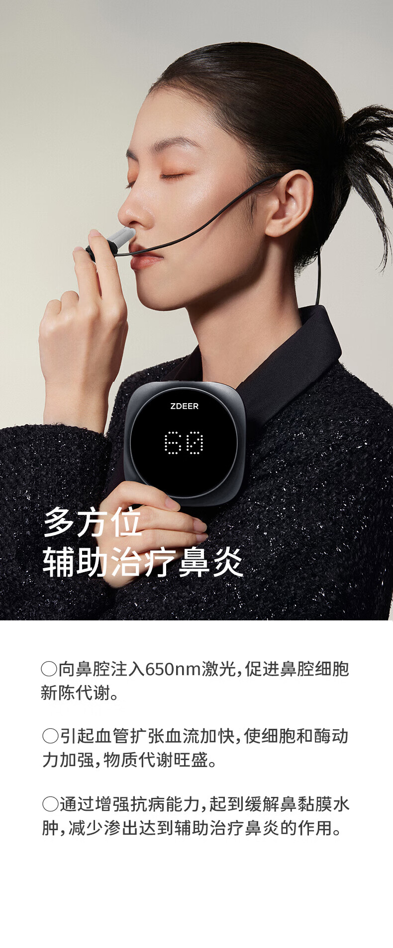 左点光⼤夫⿐炎治疗仪 ZD-BY6N 台 黑色